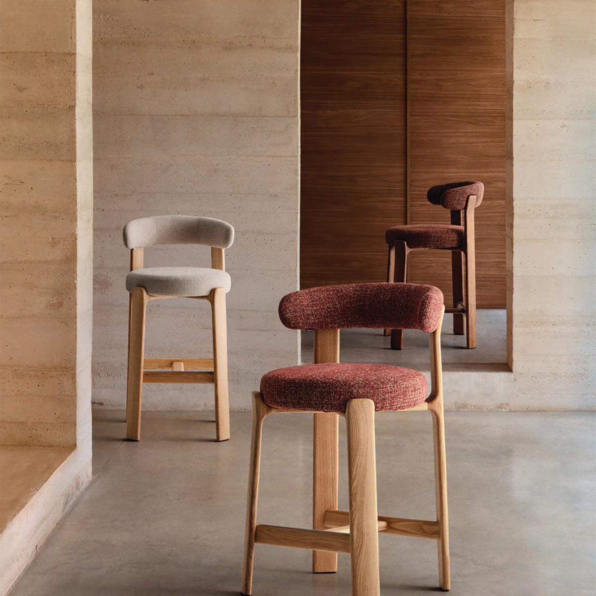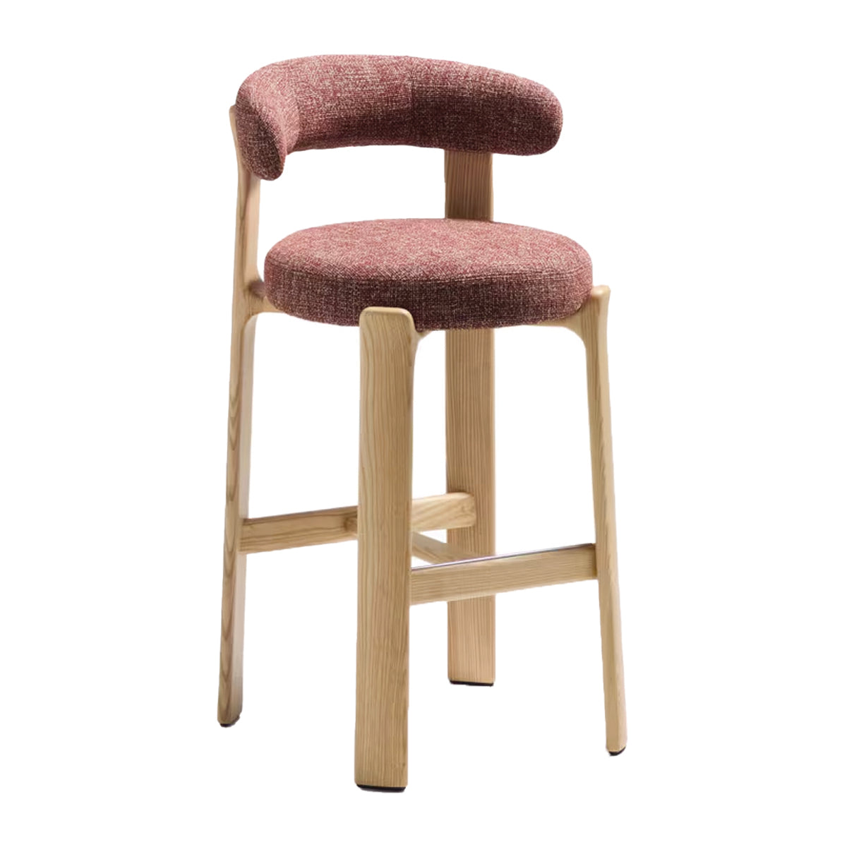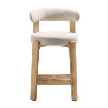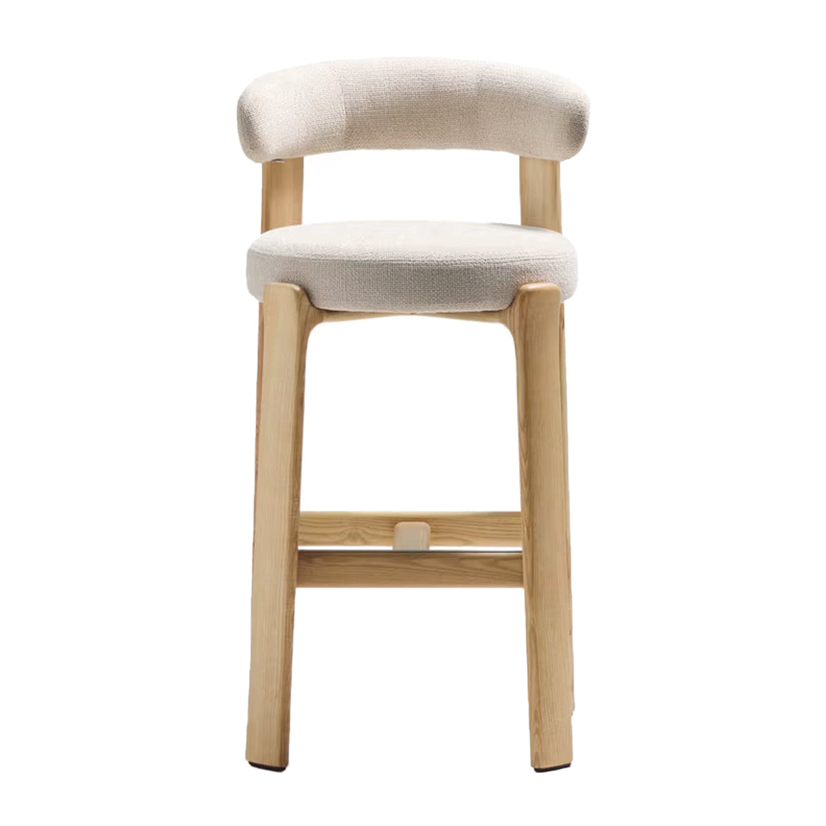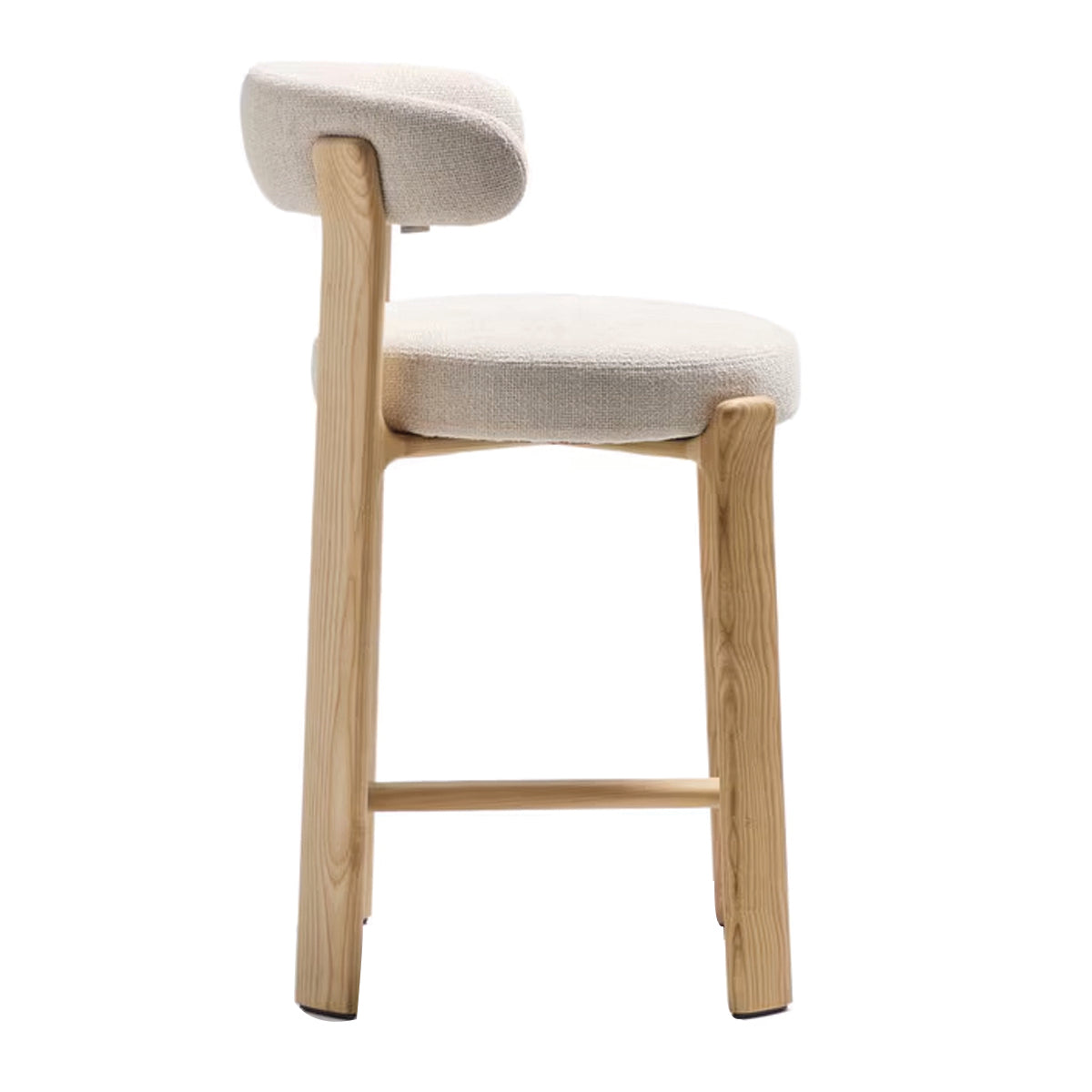The Granite Bar Stool combines sculptural form with everyday functionality. Featuring a curved, cushioned backrest and a rounded seat, it provides both comfort and support. The solid timber frame adds warmth and durability, while the soft upholstered finish enhances its inviting appeal. Whether placed around a kitchen bench or bar spae, the Granite Bar Stool brings effortless sophistication to any setting.