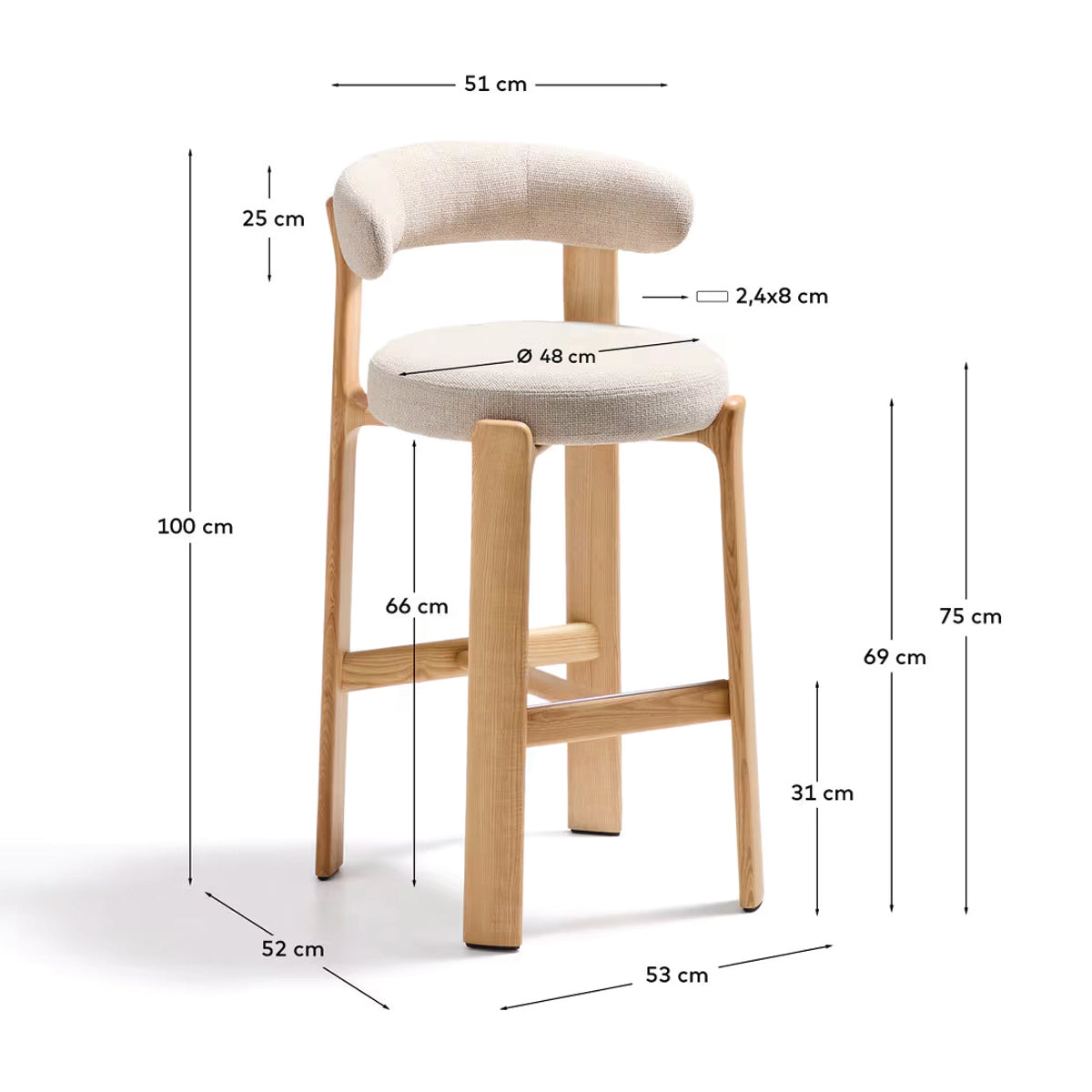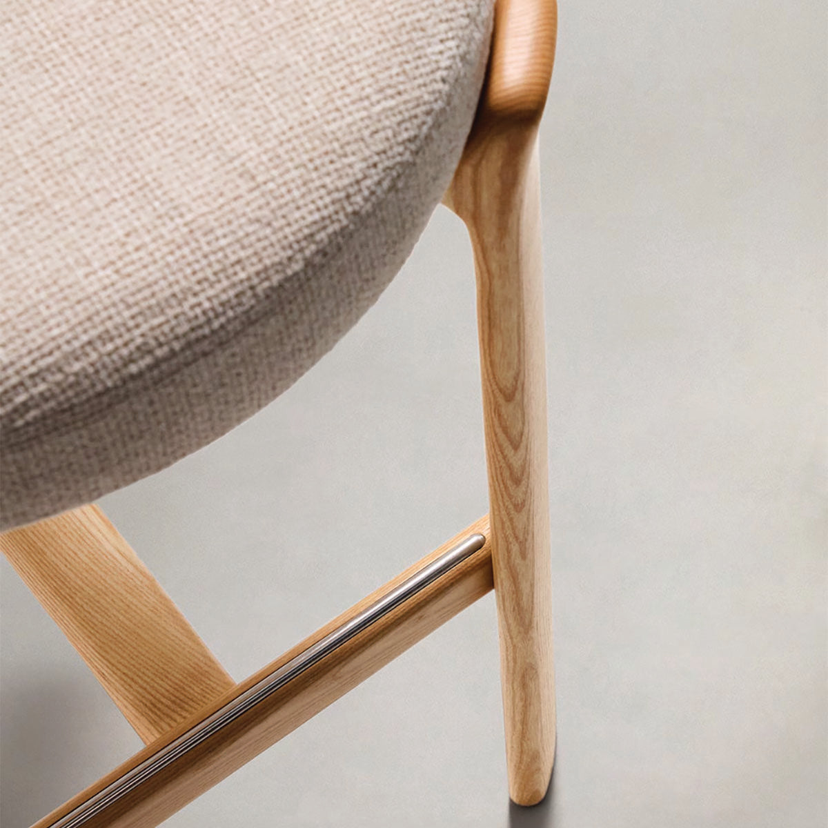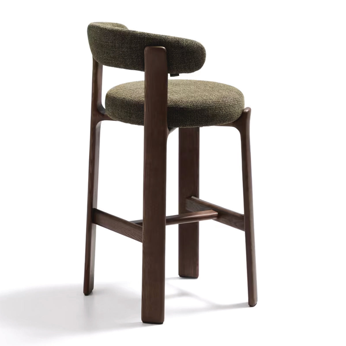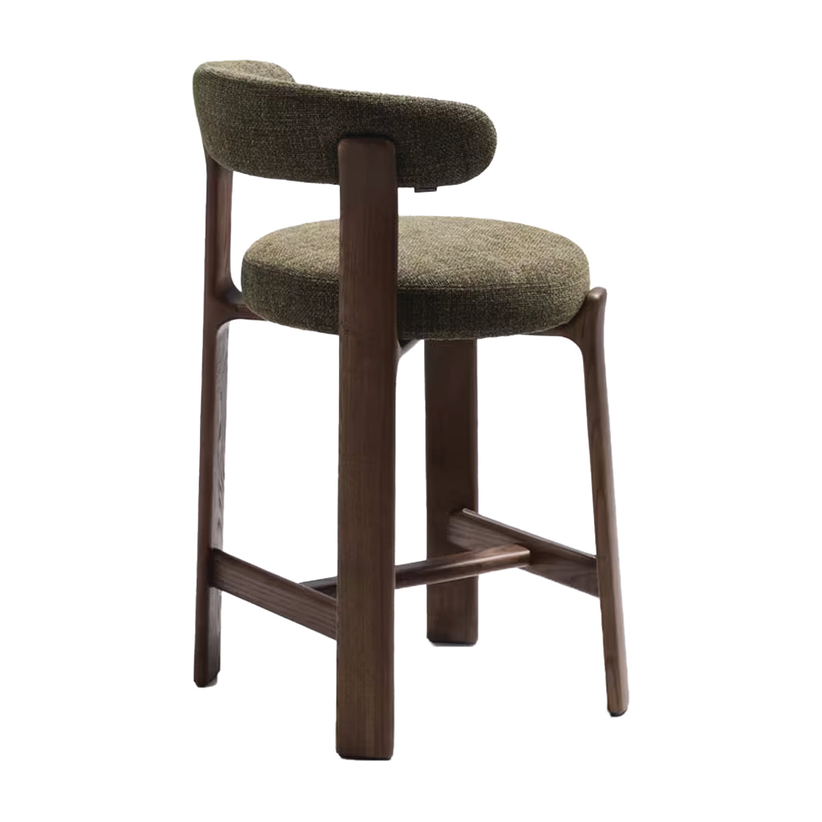 The Granite Bar Stool combines sculptural form with everyday functionality. Featuring a curved, cushioned backrest and a rounded seat, it provides both comfort and support. The solid timber frame adds warmth and durability, while the soft upholstered finish enhances its inviting appeal. Whether placed around a kitchen bench or bar spae, the Granite Bar Stool brings effortless sophistication to any setting.