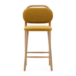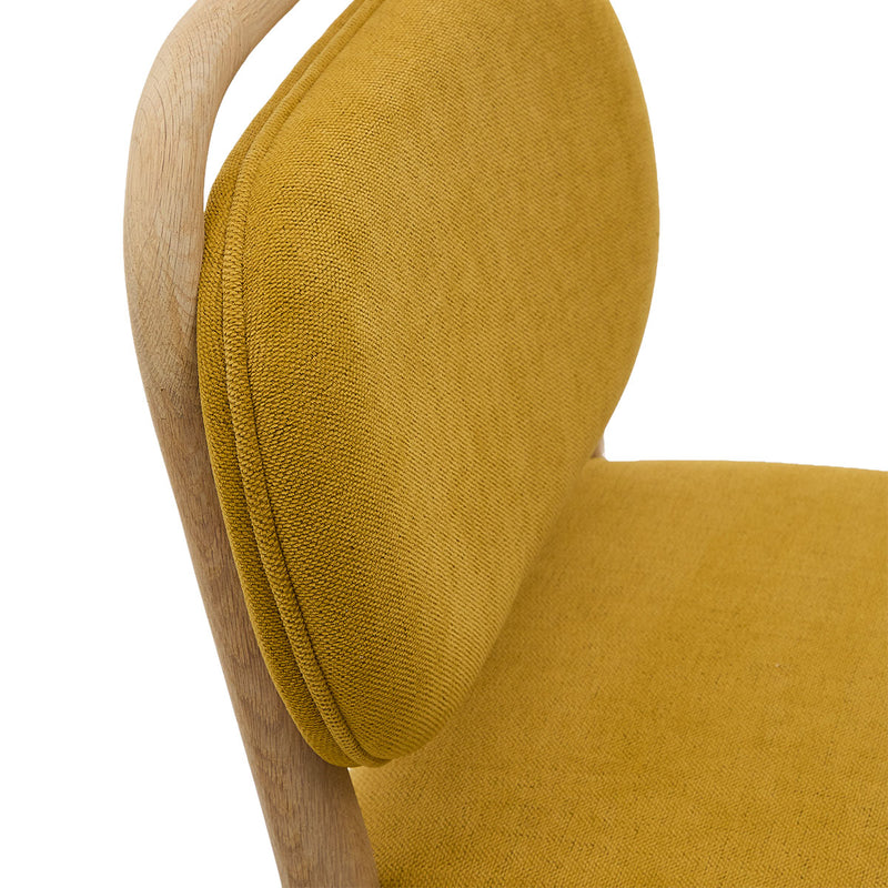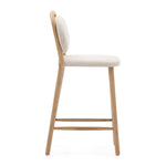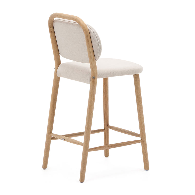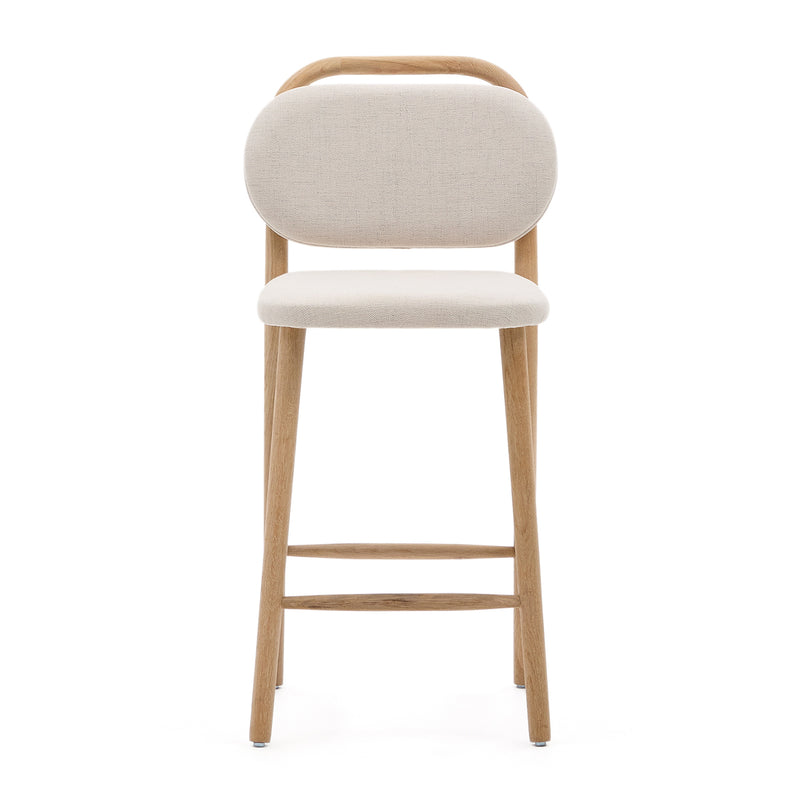 The Helda Stool brings a refined yet relaxed feel to any space. Featuring a solid oak frame with a natural finish, its sturdy construction is paired with plush fabric upholstery for a touch of warmth. The curved backrest and integrated handle create a distinctive silhouette while offering ergonomic support. A built-in footrest enhances comfort, making it ideal for kitchen counters or bar areas. A perfect blend of style and functionality, this stool suits contemporary and classic interiors alike.