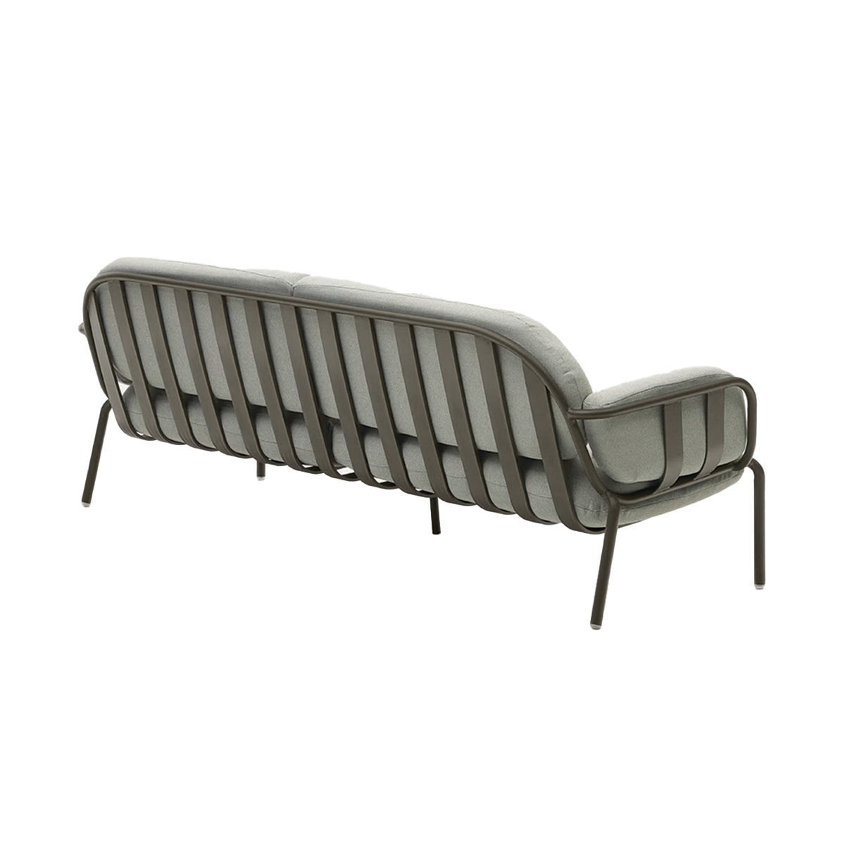 The Joncols outdoor collection showcases the beauty of organic forms, inspired by river pebbles and stones. The Joncols Outdoor 3 Seat Sofa is a durable design with a rounded, contemporary expression, ideal to elevate the style of any alfresco setting. Its curved aluminium tube structure is a lightweight, yet sturdy foundation that is resistant to rust, corrosion, and UV rays. The seat and back cushions detail stunning rounded shapes and feature conveniently removable covers, perfect for bringing comfort to the outdoors.