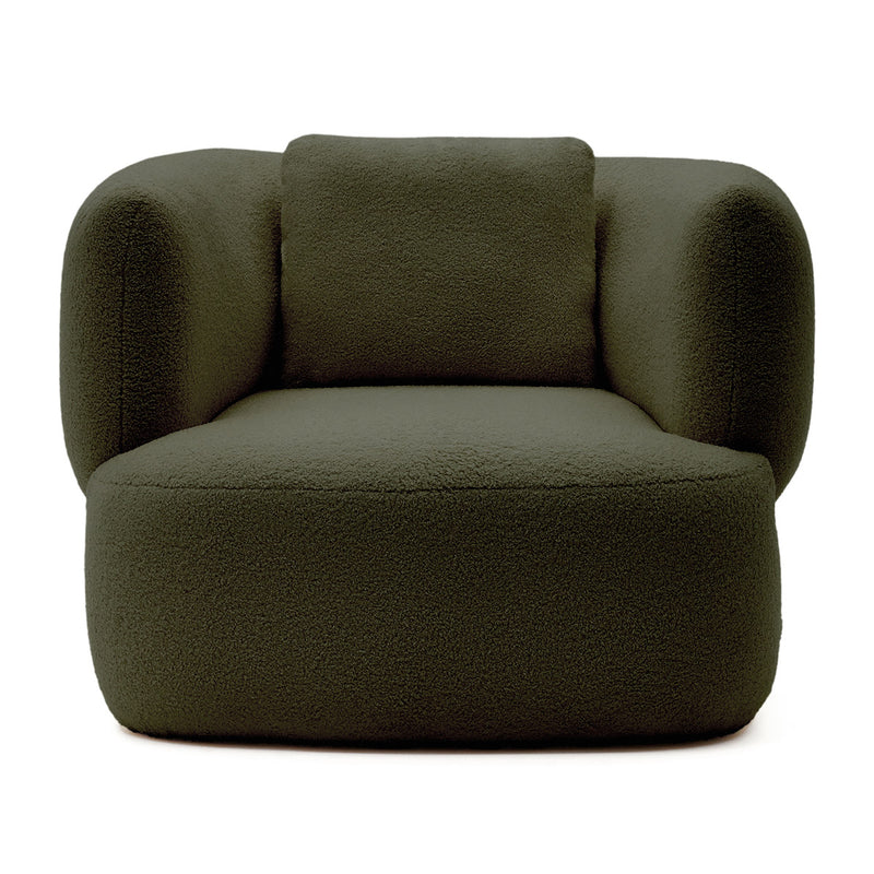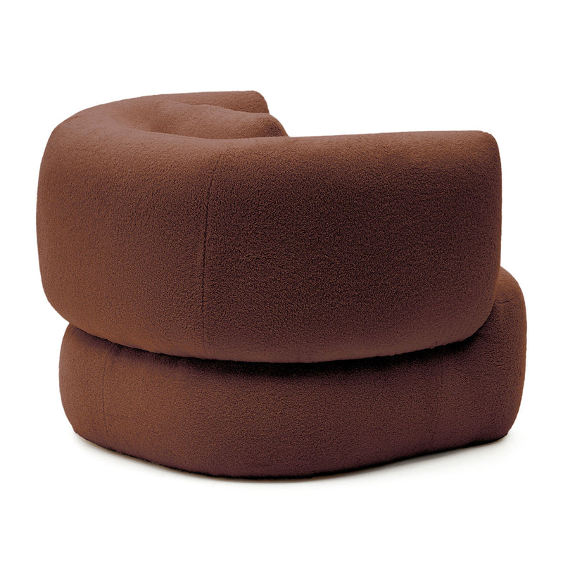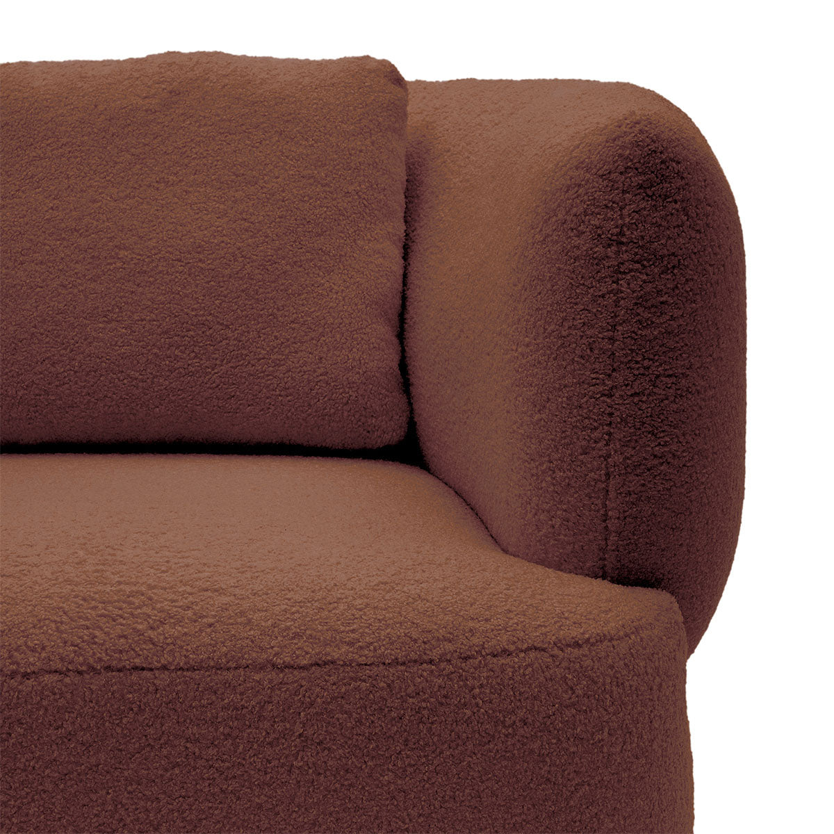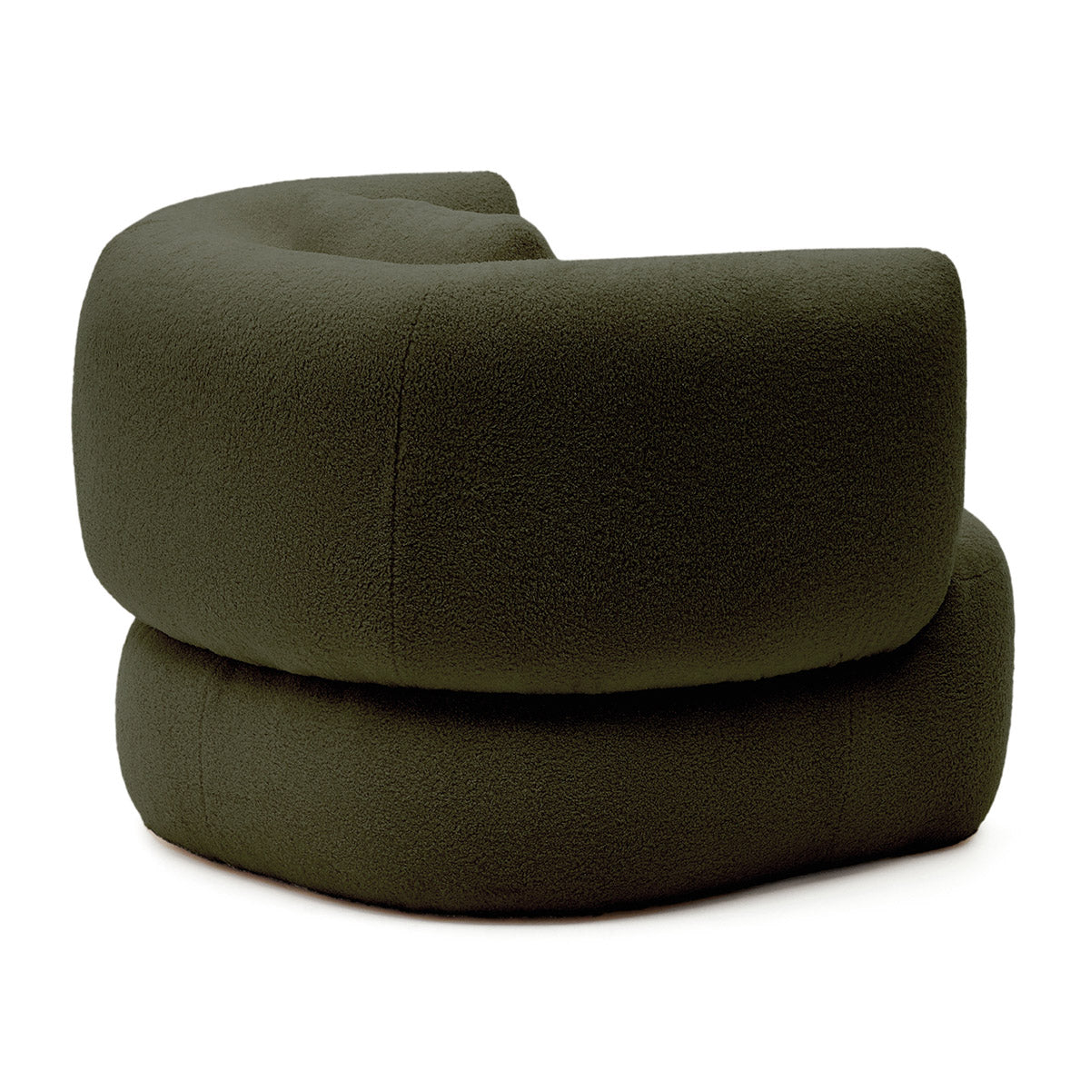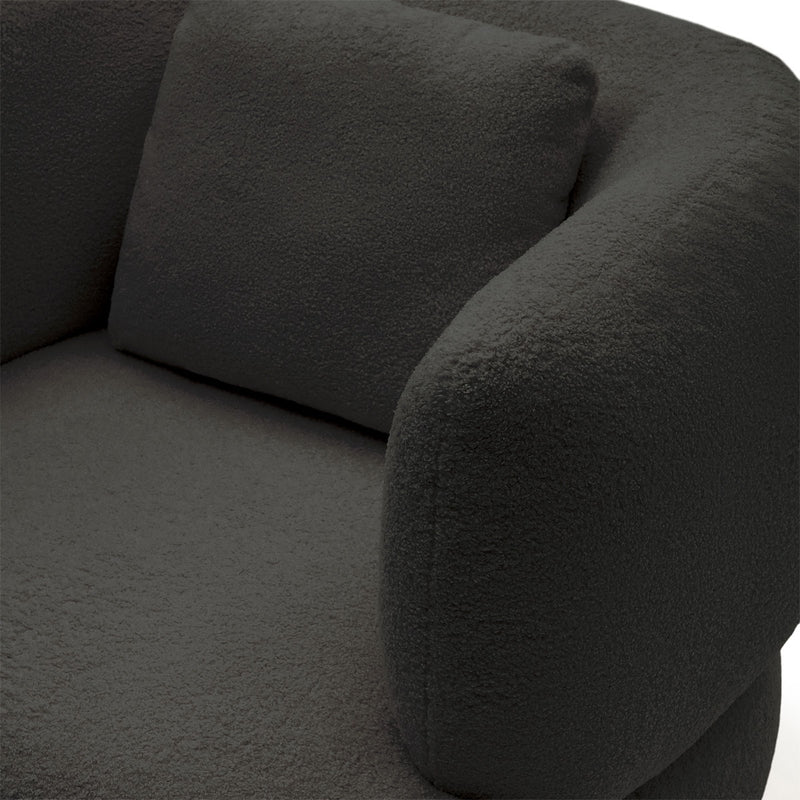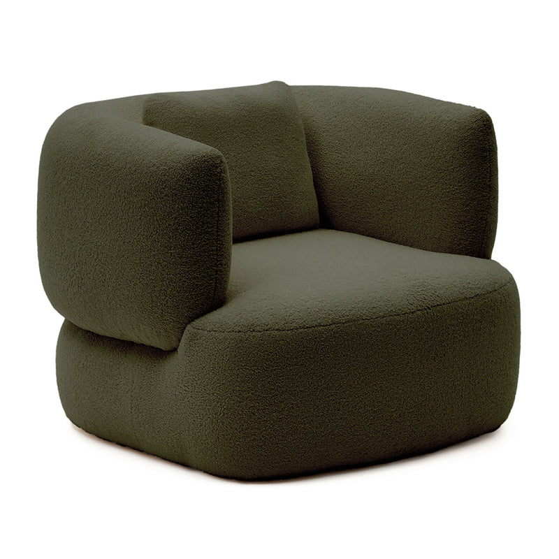 Boucle fabric with back cushion, one metre of fabric contains at least 32 recycled 500ml bottles.