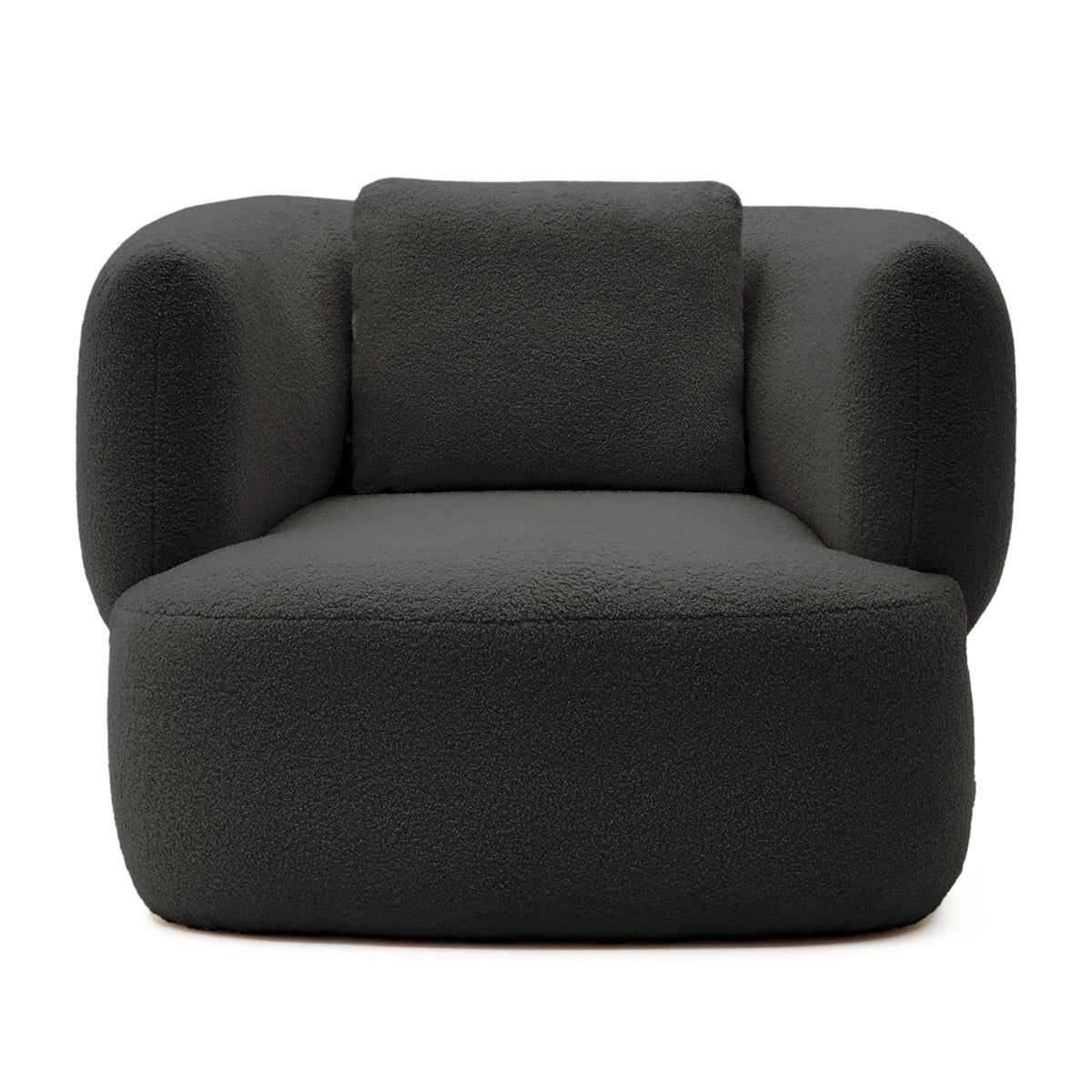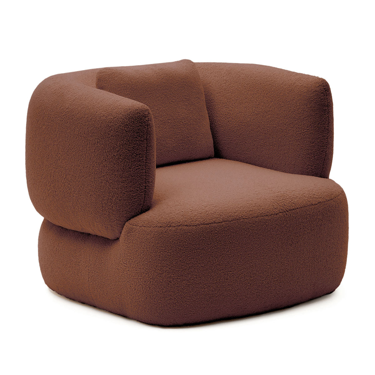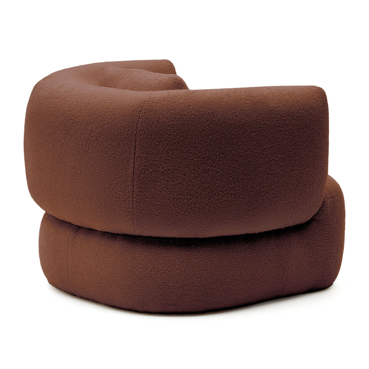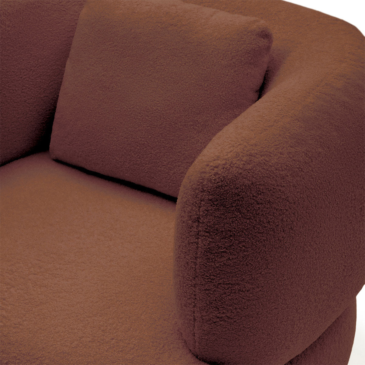 Boucle fabric with back cushion, one metre of fabric contains at least 32 recycled 500ml bottles.