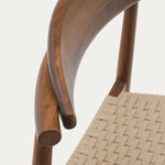 Crafted from solid wood with a warm natural finish, the Nina Bar Stool brings timeless appeal to any space. A gently curved backrest enhances comfort, while the handwoven paper cord seat adds a touch of texture and durability. Tapered legs and a sturdy footrest complete the design, making it both stylish and functional. Perfect for kitchen counters or bar areas, this stool blends organic materials with mid-century charm for effortless everyday seating.