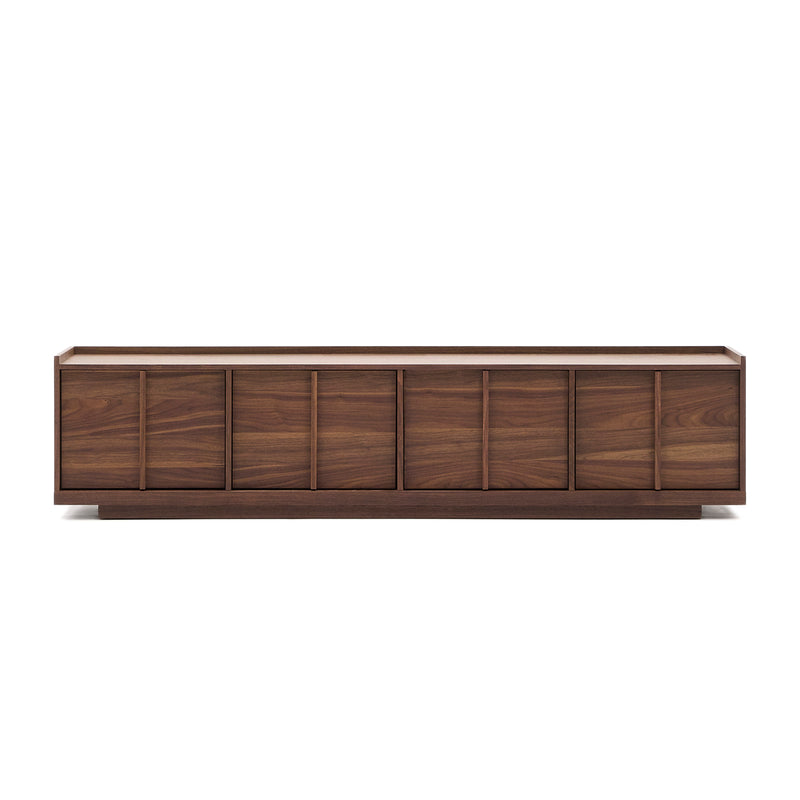 4 doors with a soft-close system and adjustable hinges, interior shelves are adjustable to adapt the storage space. It has adjustable feet so it can be levelled on an uneven floor.