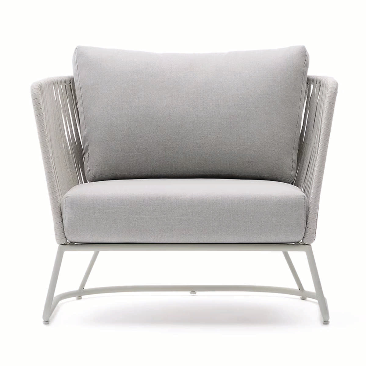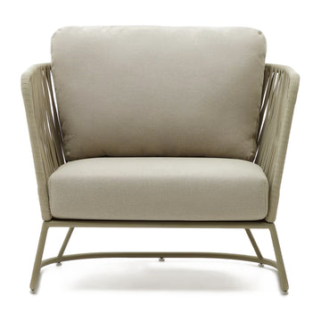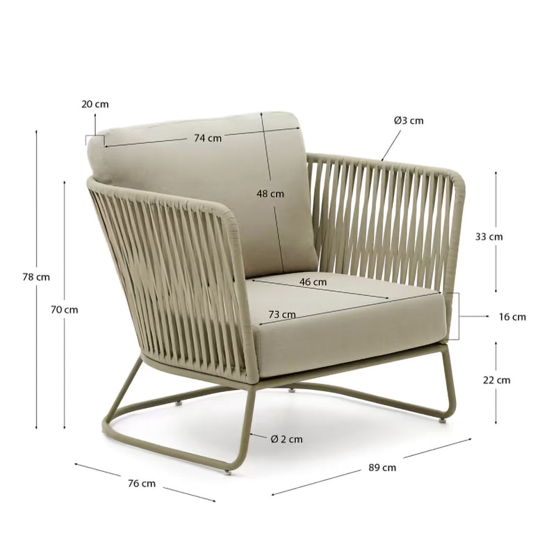 Ideal for relaxing with friends and family at your summer barbeques, the handwoven cord characteristic of the Saconca collection will bring a relaxed vibe to any space. The Saconca Outdoor Armchair features a slender, galvanised steel frame with a gorgeous, curved design. The rounded backrest is finished with handwoven polyester cord and includes a seat cushion that has a removable cover for added practicality. With its eye-catching form and timeless aesthetic, this armchair will elevate any interior or covered outdoor space.