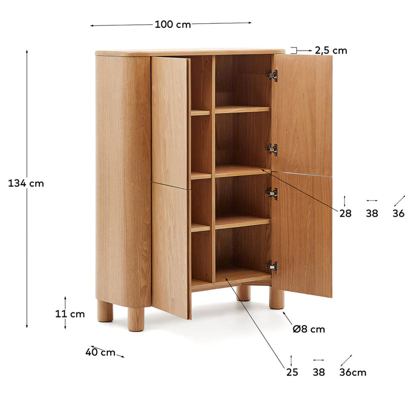 Plywood & solid ash wood construction, 4 soft-close doors, adjustable feet.