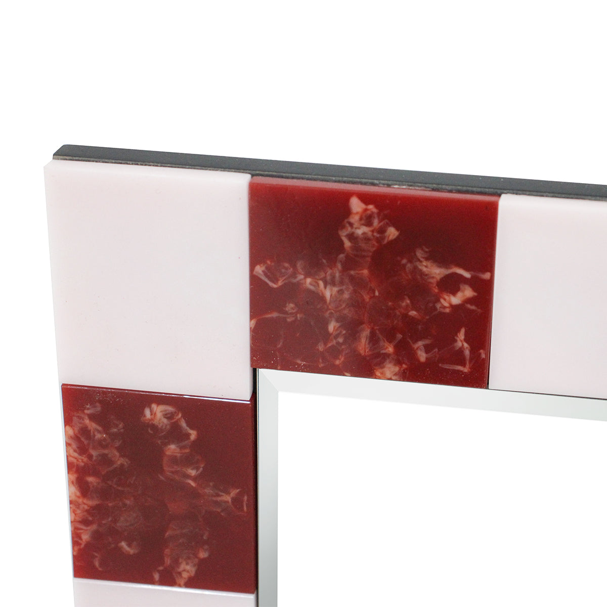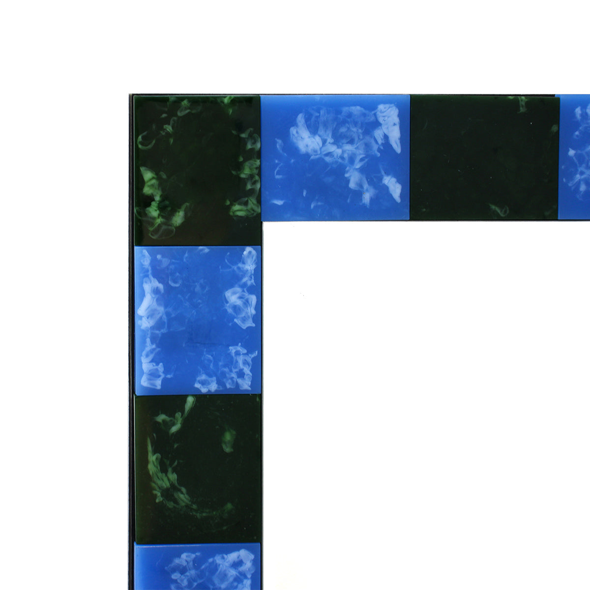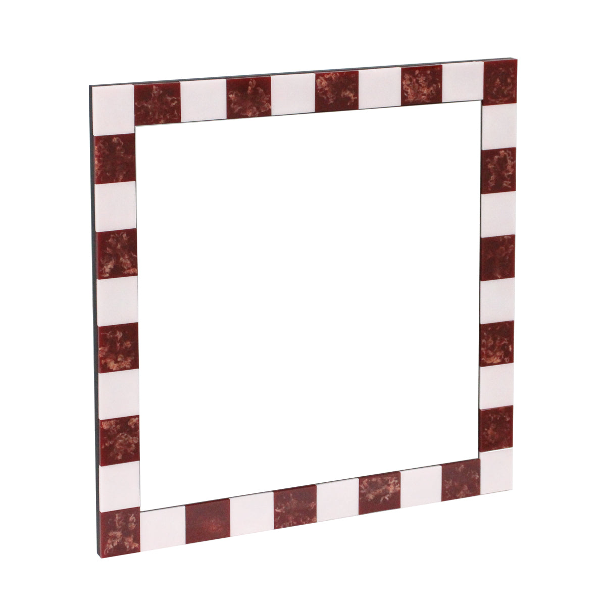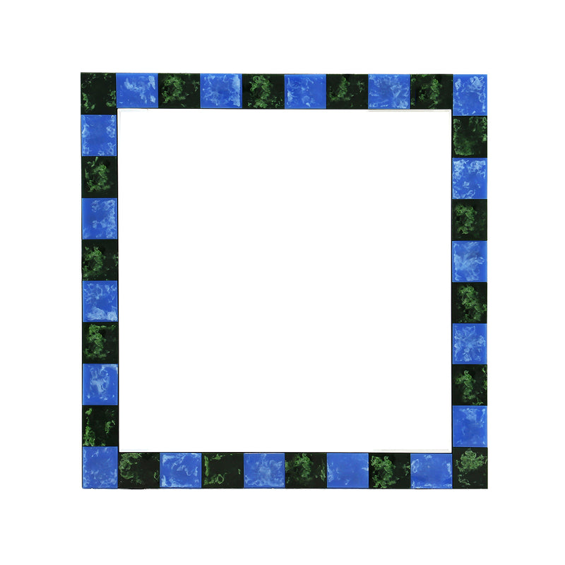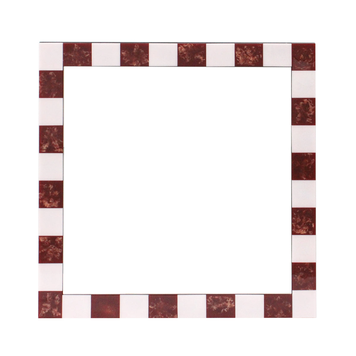 Square shape, checked design, wooden frame, fitted with D-rings for direct hanging, available in various finishes.