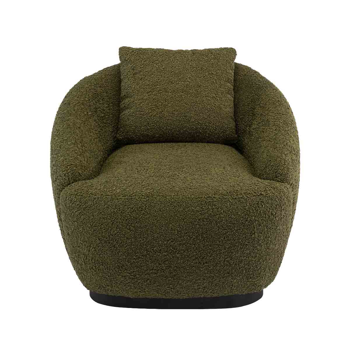 Teddy fabric upholstery, swivel base, deep seat, also available in a boucle finish.