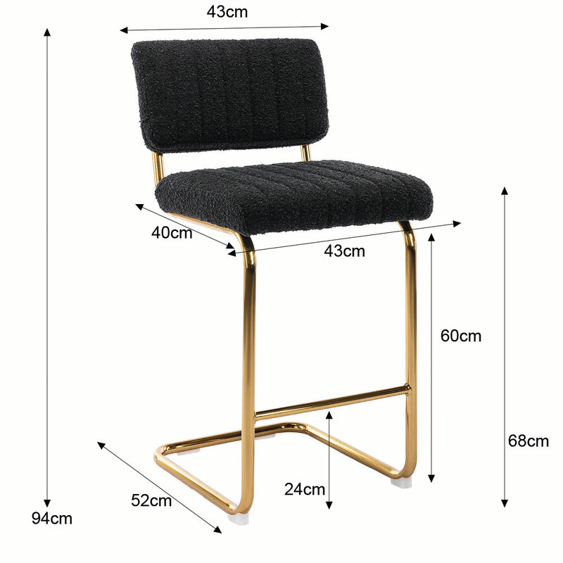 The Blake Boucle Bar Stool combines modern aesthetics and luxurious comfort to make a strong design statement in any kitchen space. Crafted from solid steel, the frame features a stunning cantilever structure that brings a unique focal point of visual interest to its design. Elevated by elegant vertical stitched details, the seat and backrest contrast the steel material with a soft boucle fabric to create a beautiful interplay of textures, whilst offering supreme support with plush foam padding. The Blake comes in various timeless colours and finishes, allowing you to find the perfect one to suit your unique taste and home.