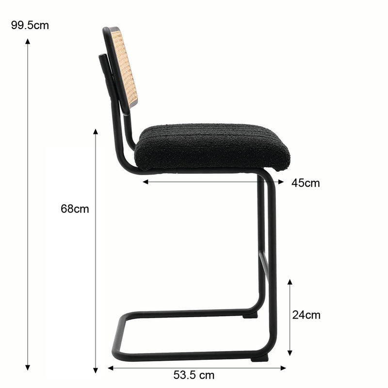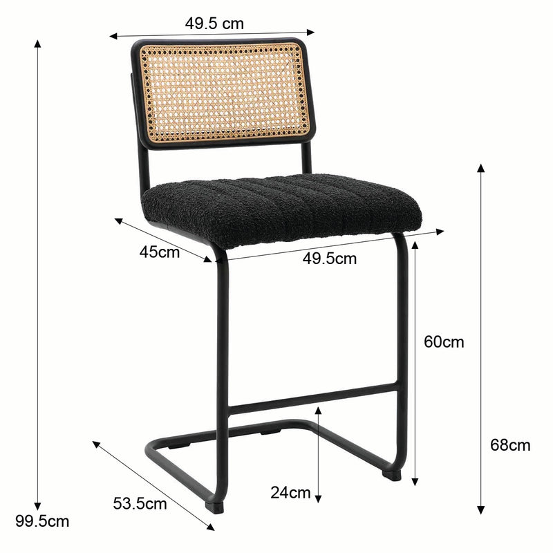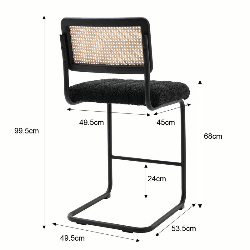 The Blake Rattan Boucle Bar Stool combines modern aesthetics and luxurious comfort to make a strong design statement in any kitchen space. Crafted from solid steel, the frame features a stunning cantilever structure that brings a unique focal point of visual interest to its design. The contrasting materials of the natural rattan backrest and soft boucle seat create a beautiful interplay of textures, whilst offering supreme support with plush foam padding. The tactile and visually appealing aesthetic of this stool will elevate your interiors, and last your home for years to come.