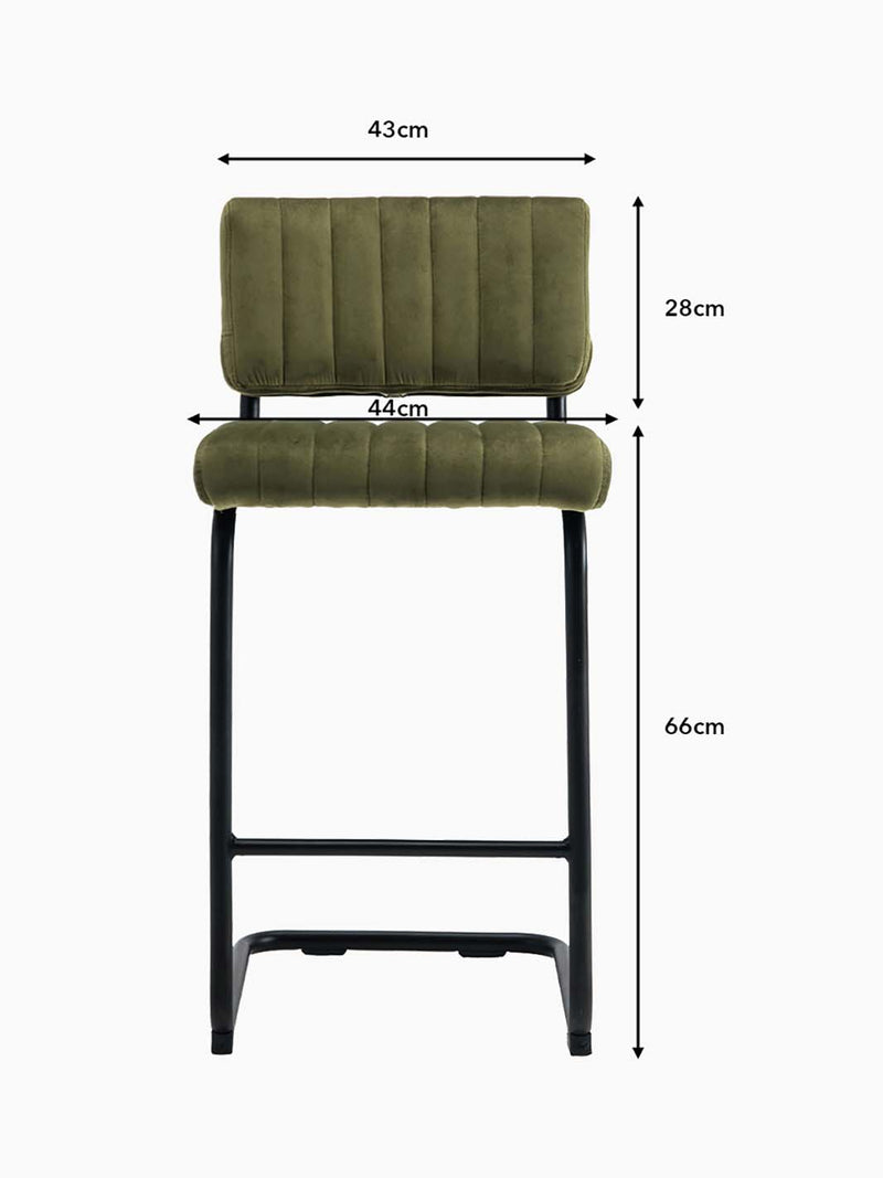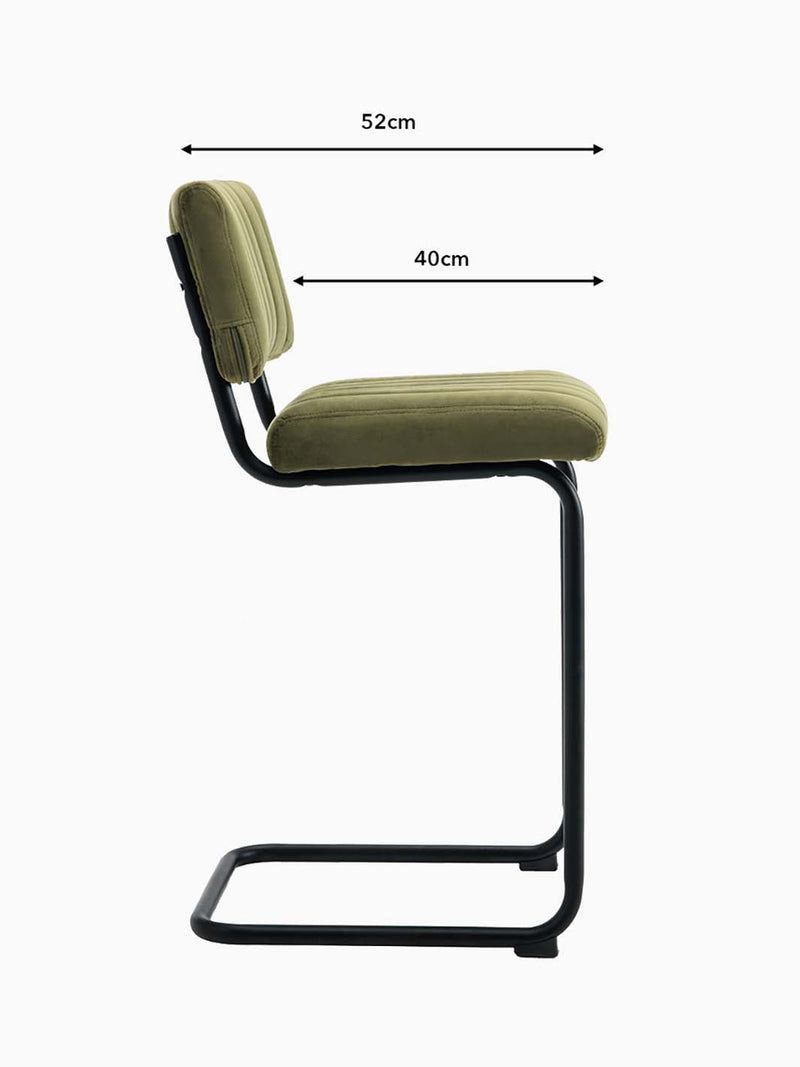 The Blake Velvet Bar Stool combines modern aesthetics and luxurious comfort to bring an unapologetic luxe to any kitchen space. Crafted from solid steel, the frame features a stunning cantilever structure that brings a unique focal point of visual interest to its design. Elevated by elegant vertical stitched details, the seat and backrest contrast the steel material with an opulent velvet upholstery to create a beautiful interplay of textures, whilst offering supreme support with plush foam padding. The Blake comes in various timeless colours and finishes, allowing you to find the perfect one to suit your unique taste and home.