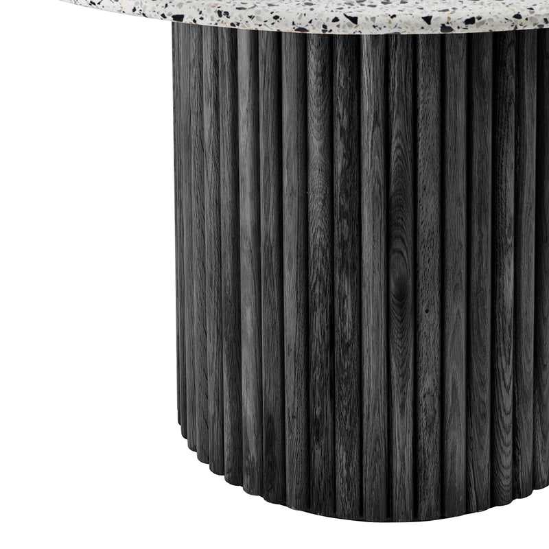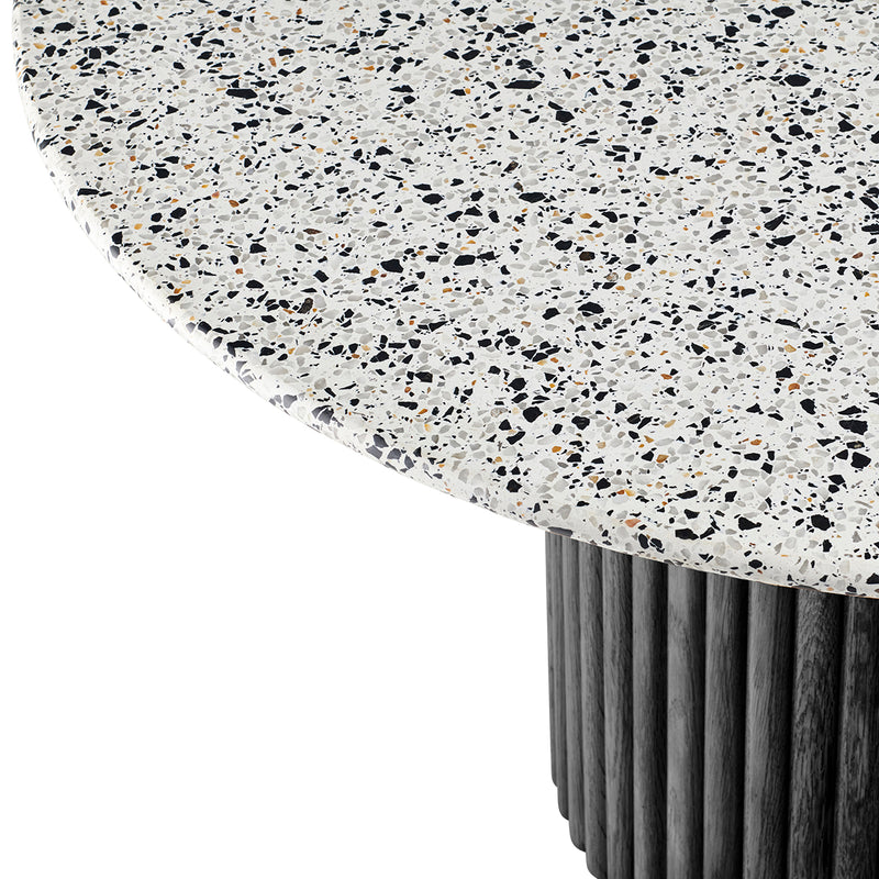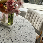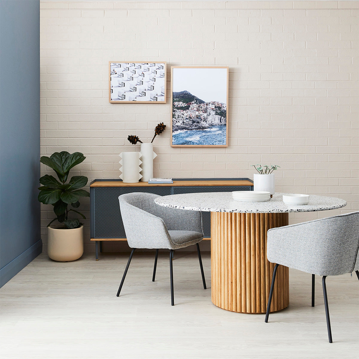 The Cosmos Dining Table is a timeless and contemporary statement for your dining space, with a circular white terrazzo top and American Oak timber clad column base. Available in multiple timber finishes and sizes, browse the rest of the Cosmos collection for end table, coffee table and console table options.