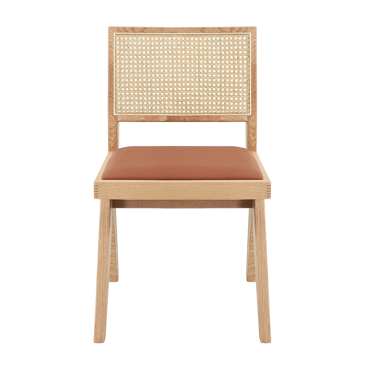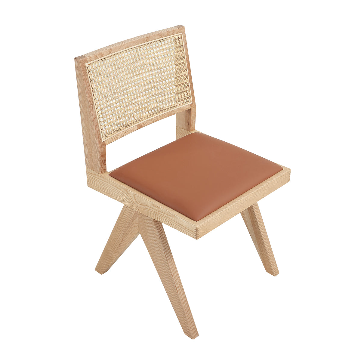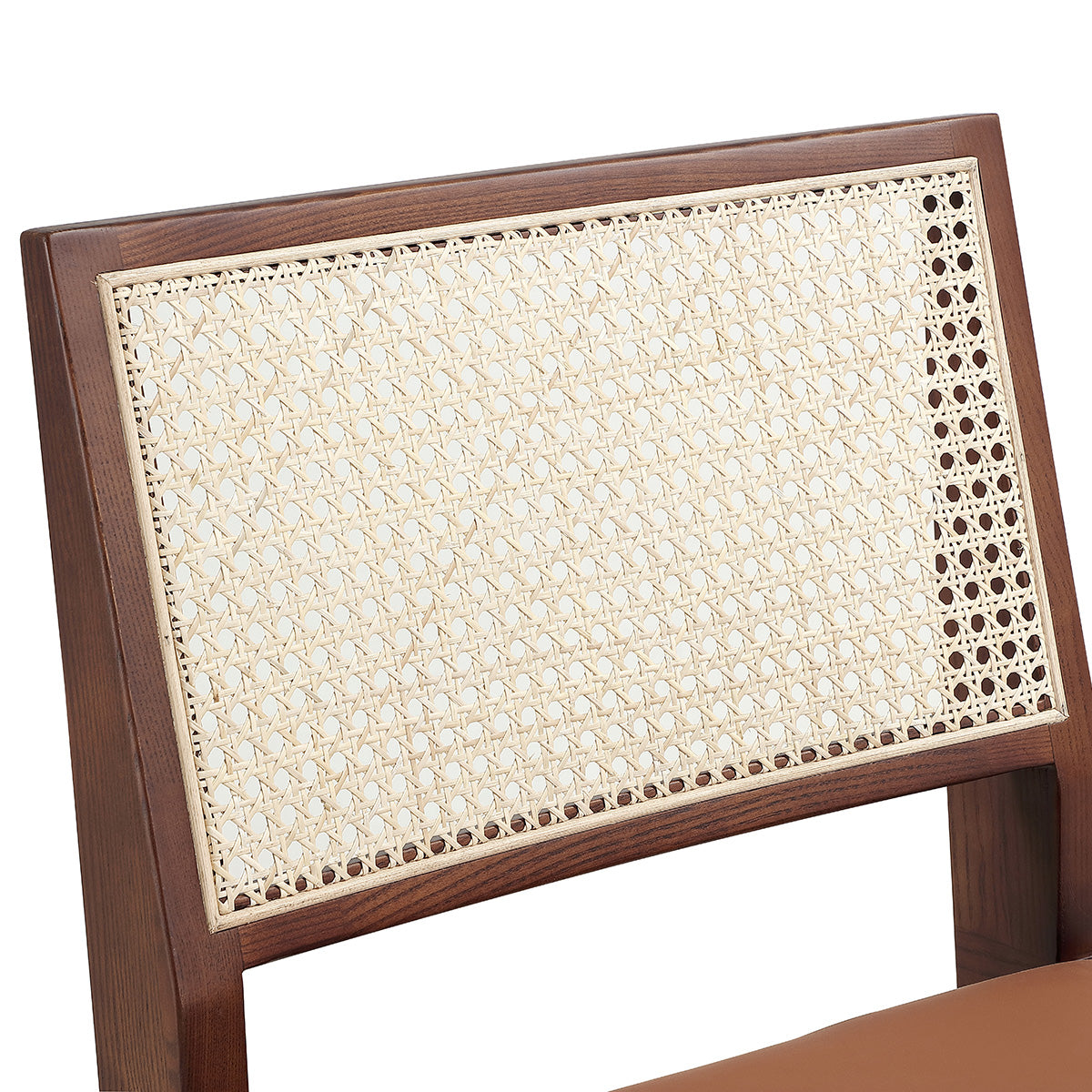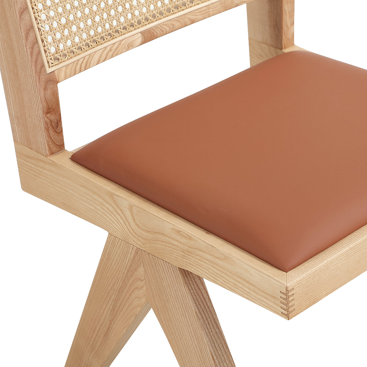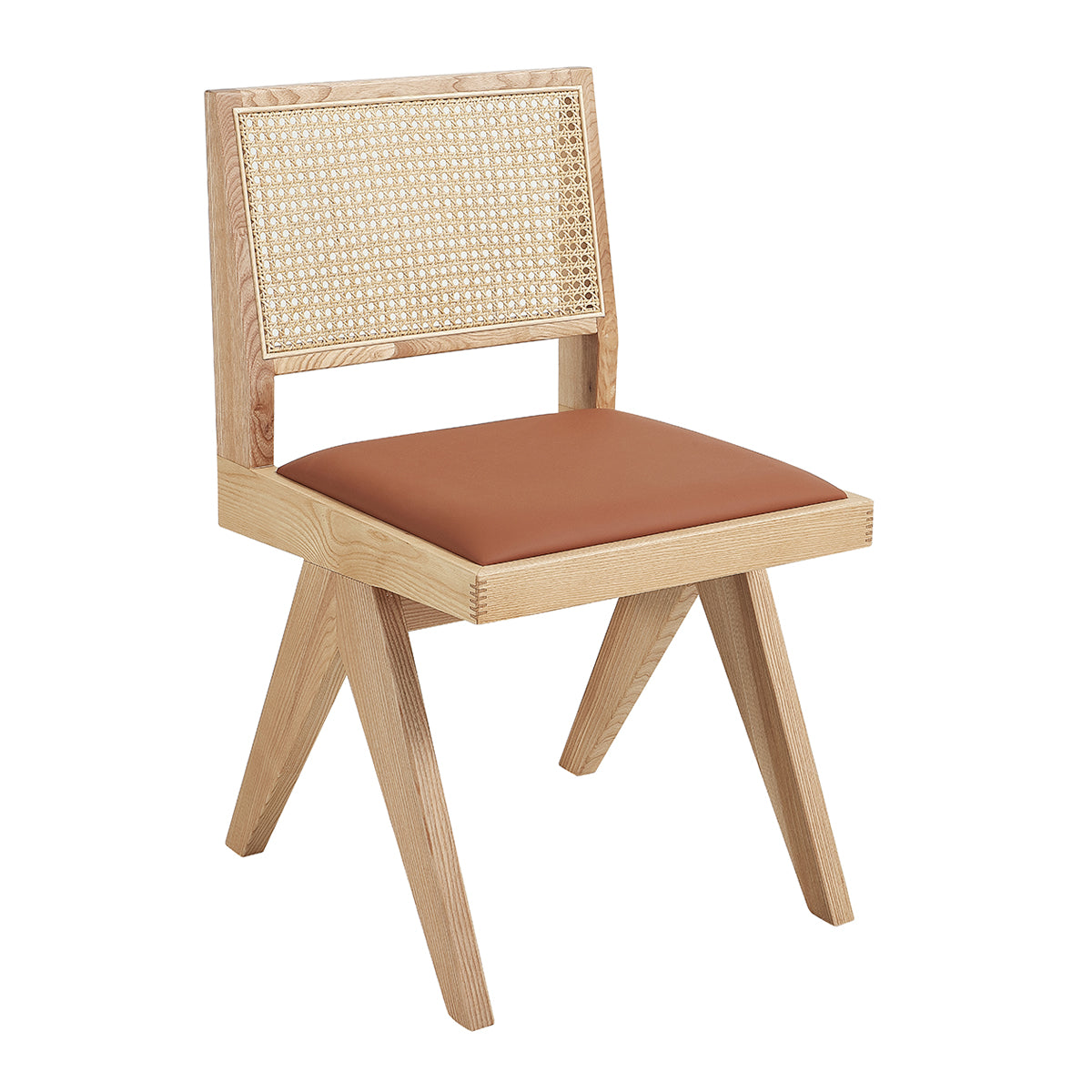 The Cuba Dining Chair is a contemporary classic with an angular form. Crafted from ash timber, it features gently tapered legs and a natural rattan backrest that brings an element of warmth and texture to its design. The leather upholstered seat enhances its visual interest and comfort, making it the perfect piece to accompany long dinners and relaxed entertaining.