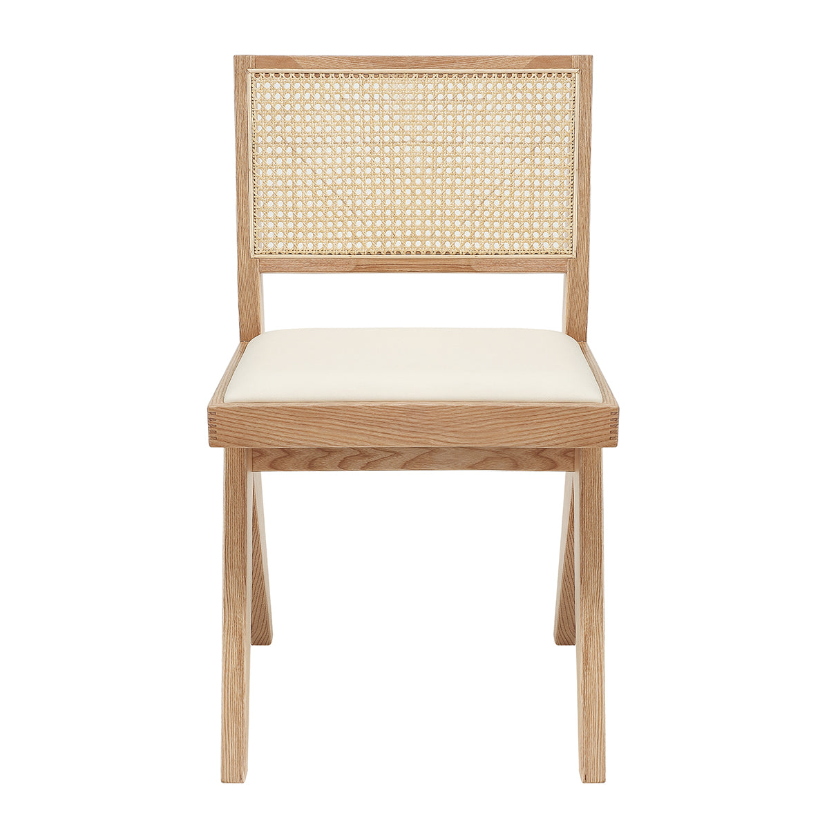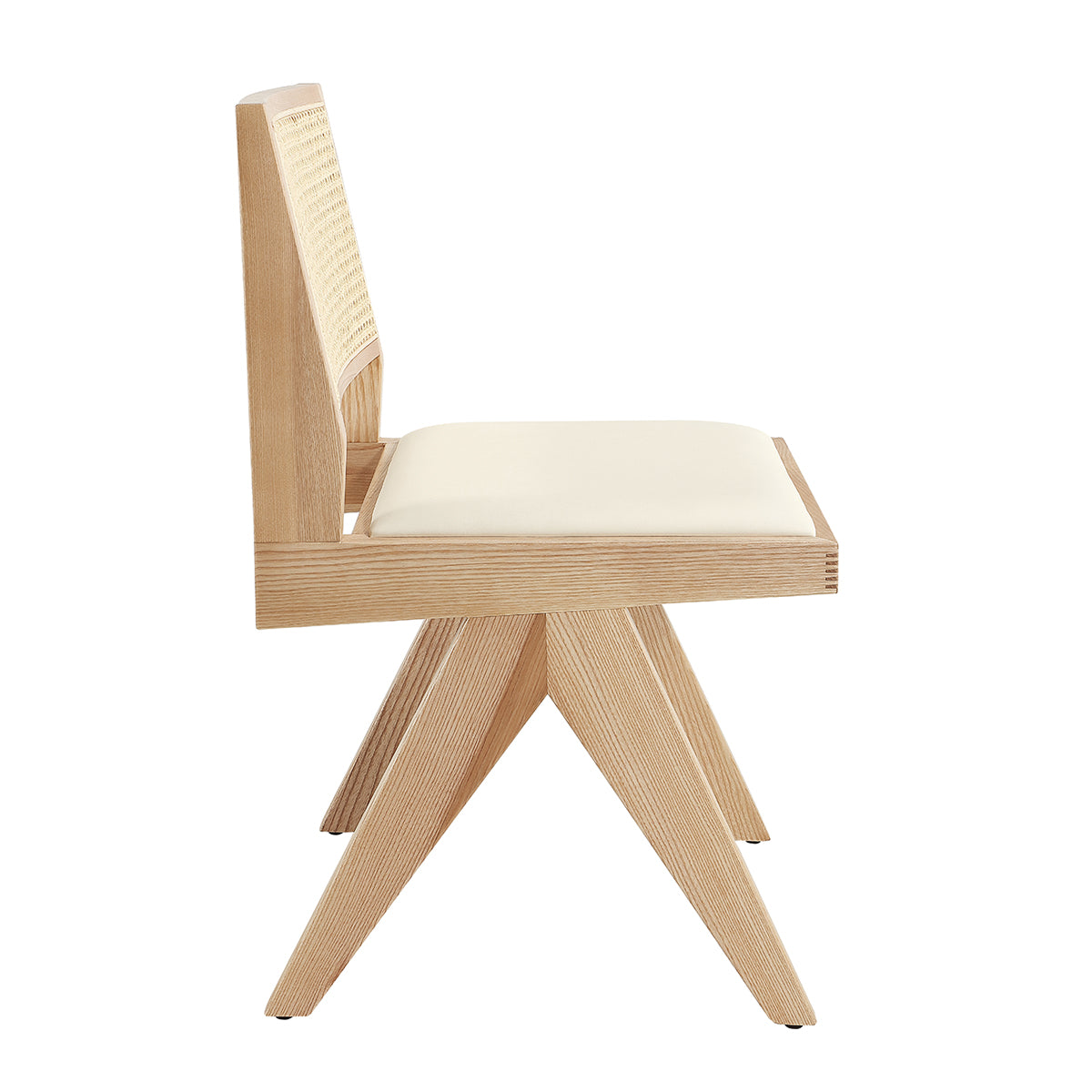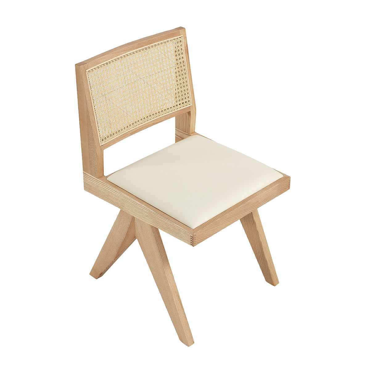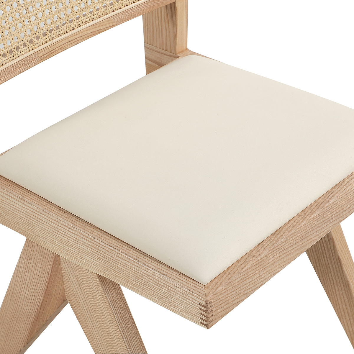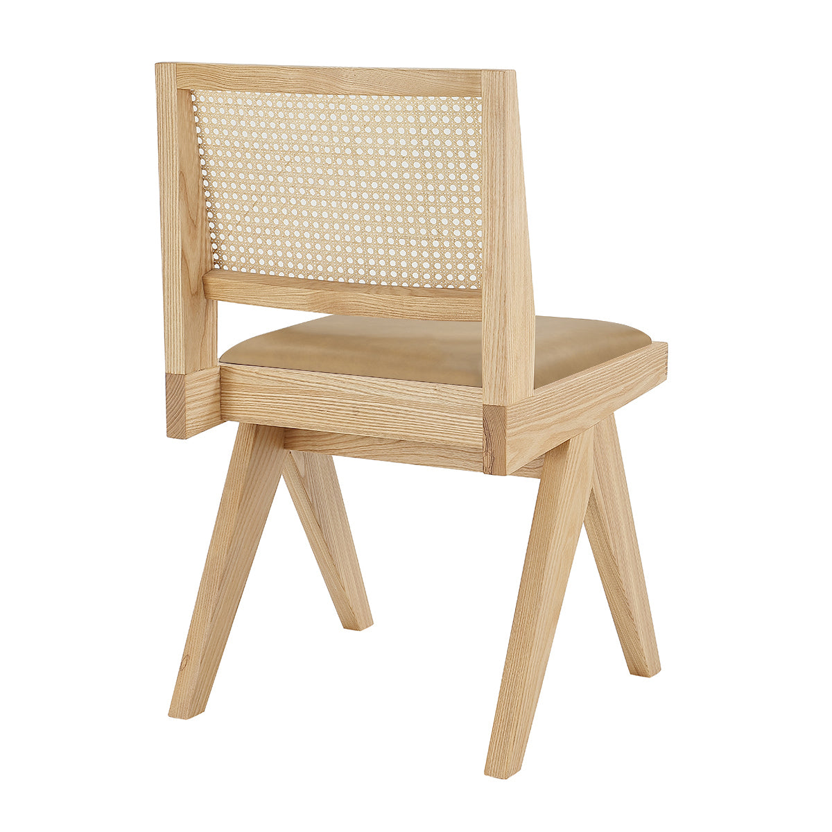 The Cuba Dining Chair is a contemporary classic with an angular form. Crafted from ash timber, it features gently tapered legs and a natural rattan backrest that brings an element of warmth and texture to its design. The leather upholstered seat enhances its visual interest and comfort, making it the perfect piece to accompany long dinners and relaxed entertaining.