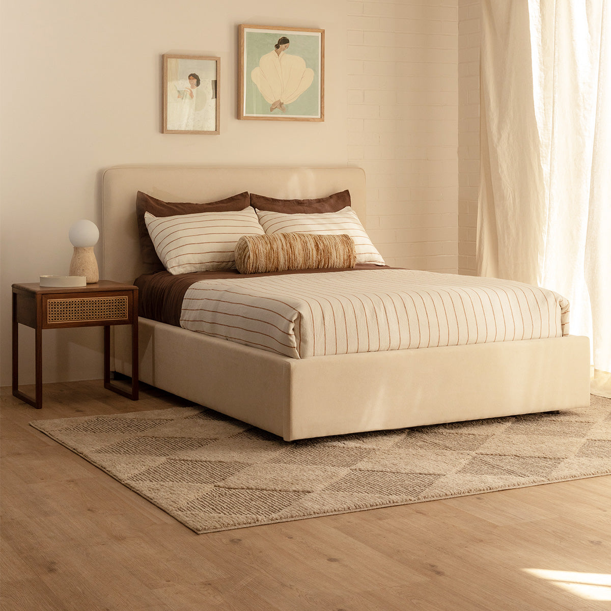 Sturdy MDF frame, foam padded, fully upholstered bed
