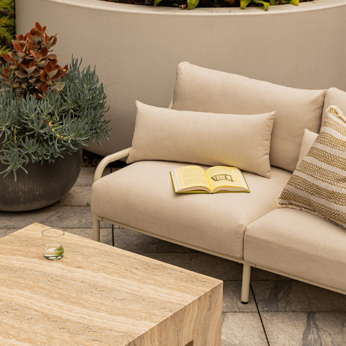 The Dune Outdoor Sofa is a contemporary staple for relaxed alfresco living. Featuring a low-profile silhouette, its durable powder-coated steel frame is designed with modern appeal and longevity in mind. The sofas cushioned seating ensures all-day comfort, while its simple form keeps your outdoor space looking effortlessly stylish. Available in a range of versatile colourways, the Dune strikes the perfect balance between style and practicality, creating a timeless lounging piece for any home.