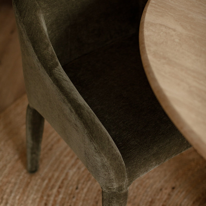 Gently curved backrest and arms for added comfort, sleek, rounded legs enhance the modern silhouette, available in various colourways.