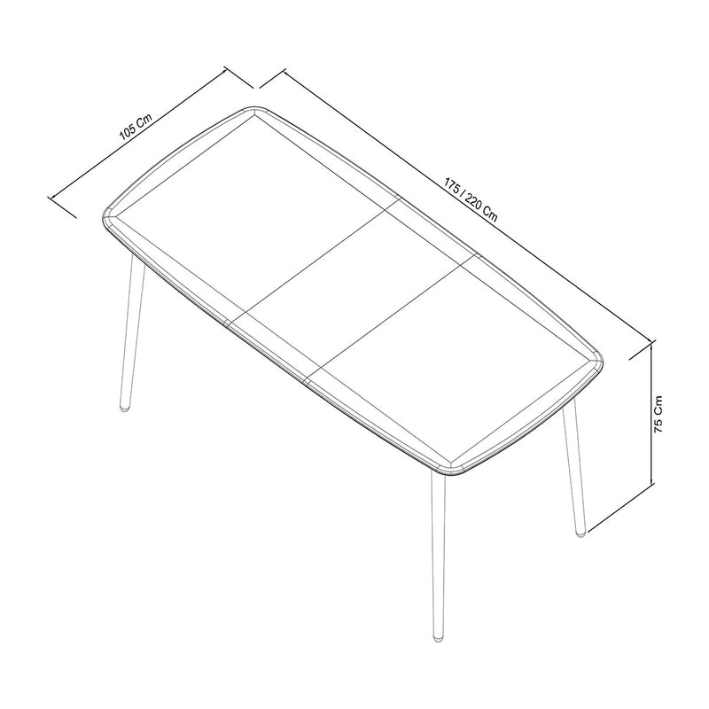 Extended table dimension: 220Wx 105D x 75H;From floor to under apron:73.5cm. From floor to under table top is 80.05cm -