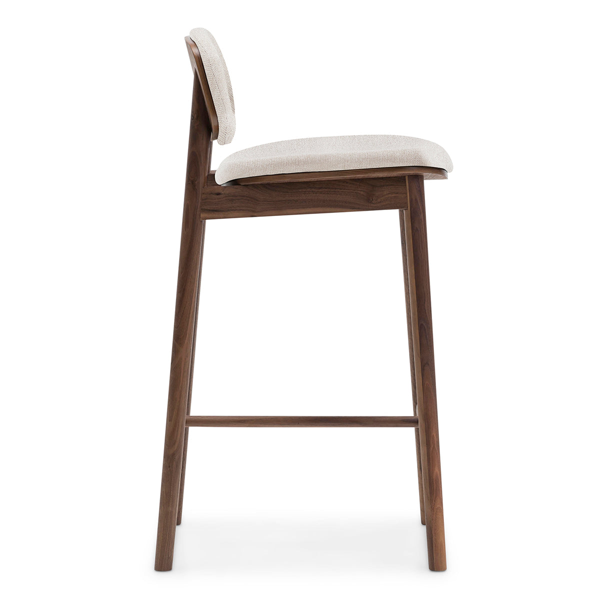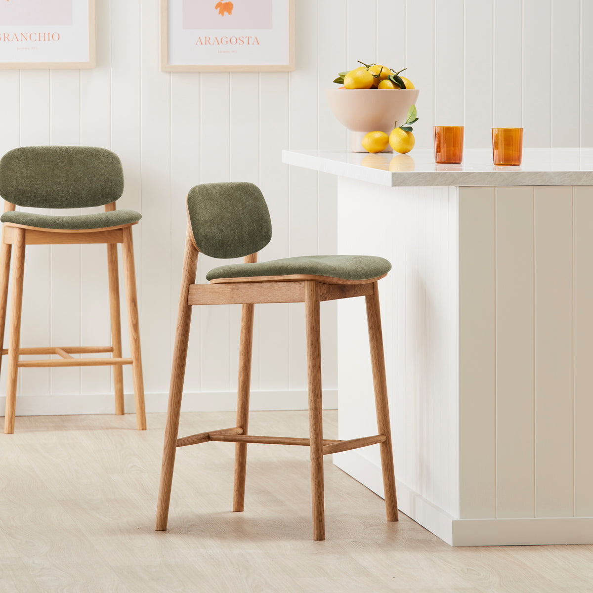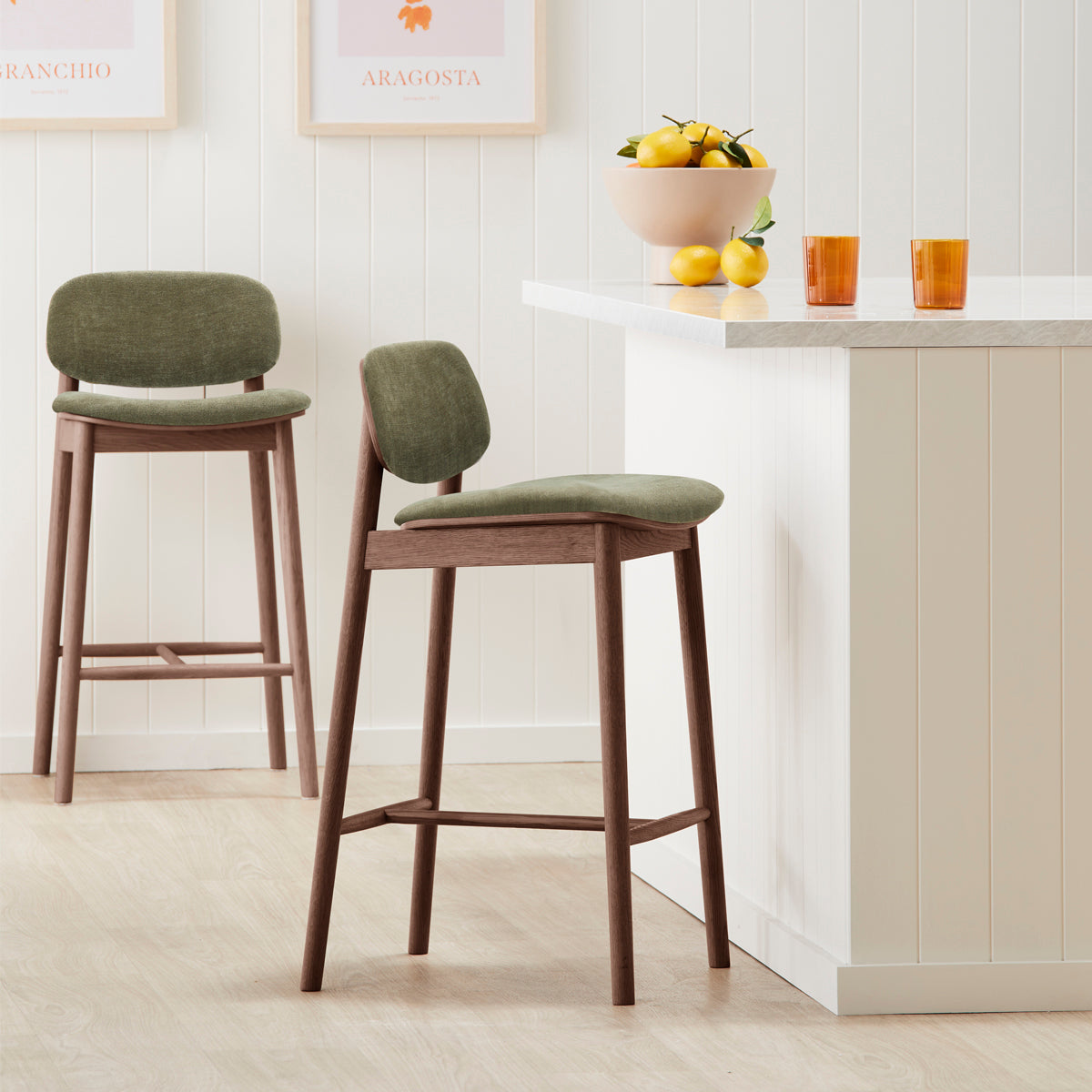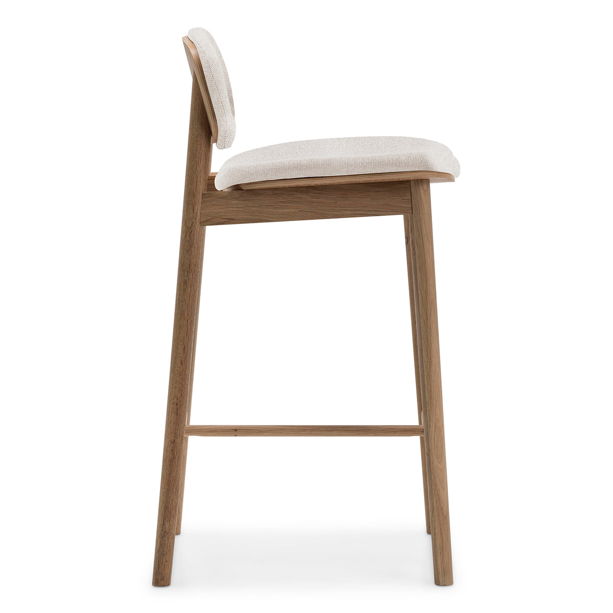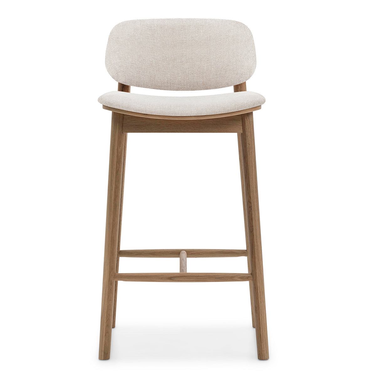 Featuring a simple silhouette, the Lando Fabric Bar Stool is the Scandi-inspired piece that will elevate your kitchen space to new heights. The curved seat and backrest is enhanced with a plush fabric upholstery and comfortable padding, inviting relaxation with an air of class to any space. With its minimal design and classic form, this versatile stool is the perfect addition to your home, effortlessly blending with both modern and traditional interiors.