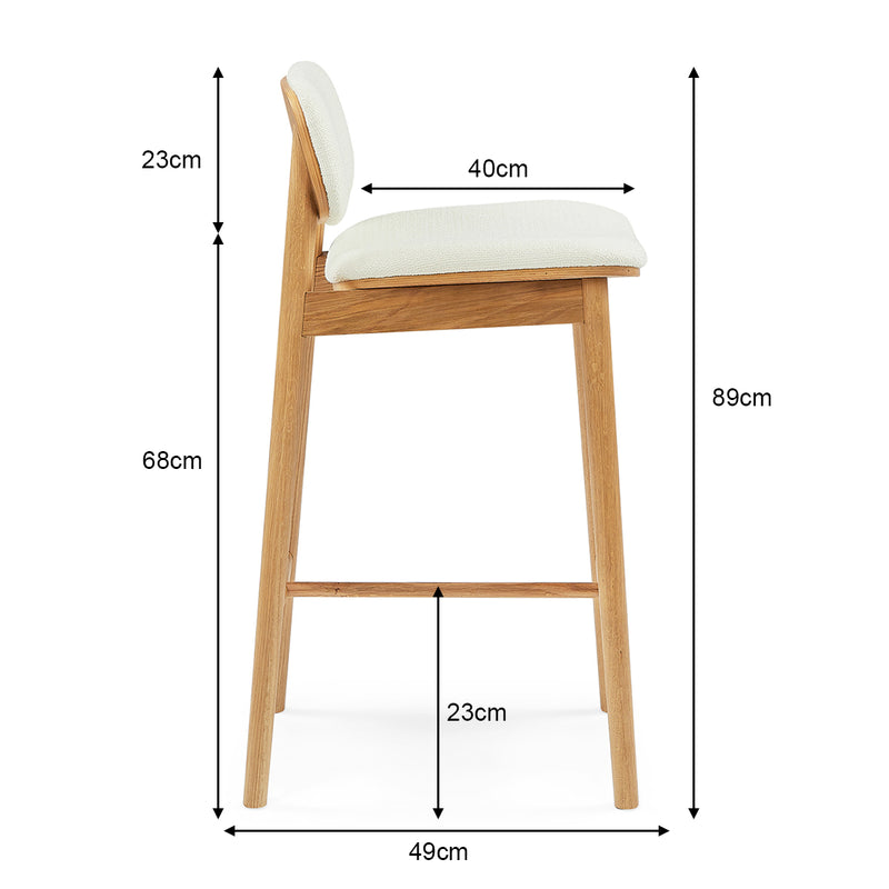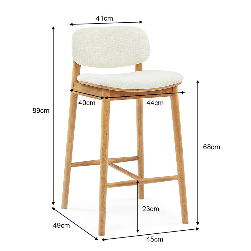 Featuring a simple silhouette, the Lando Fabric Bar Stool is the Scandi-inspired piece that will elevate your kitchen space to new heights. The curved seat and backrest is enhanced with a plush fabric upholstery and comfortable padding, inviting relaxation with an air of class to any space. With its minimal design and classic form, this versatile stool is the perfect addition to your home, effortlessly blending with both modern and traditional interiors.