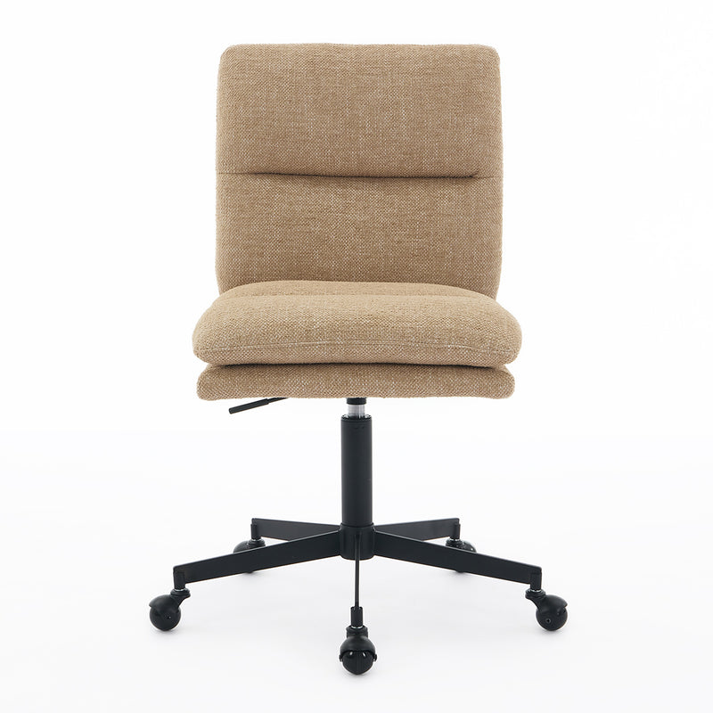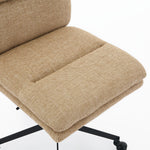 The Logan Fabric Office Chair features a classic, minimalist design. The soft, upholstery is cream boucle and the brushed gold base features casters for smooth and easy mobility. The cushioned seat offers additional support when in use while the high back provides extra comfort. This classic style office chair is perfect for any home or professional environment. We recommended that this chair be placed on a hard mat to protect your floors; if on a carpet or rug, please do not to drag the chair while sitting on it as additional weight paired with the caused friction could cause the castors to get stuck, malfunction or break.