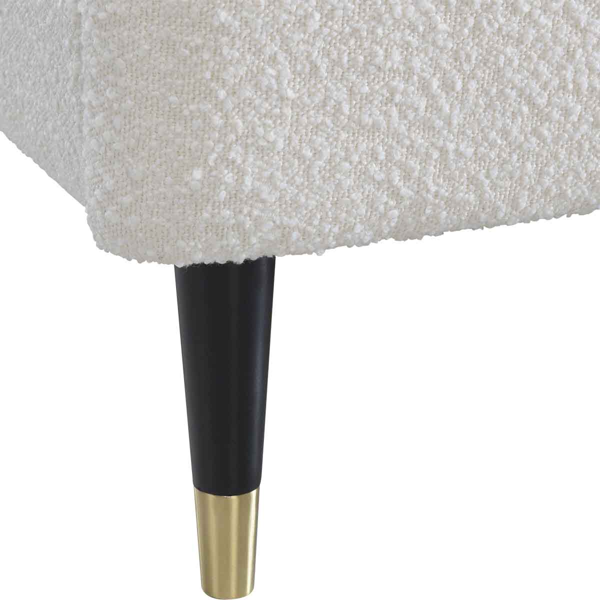 Luxe, classic design, pleat detailing, padded and upholstered frame, solid timber legs, brushed brass feet caps.