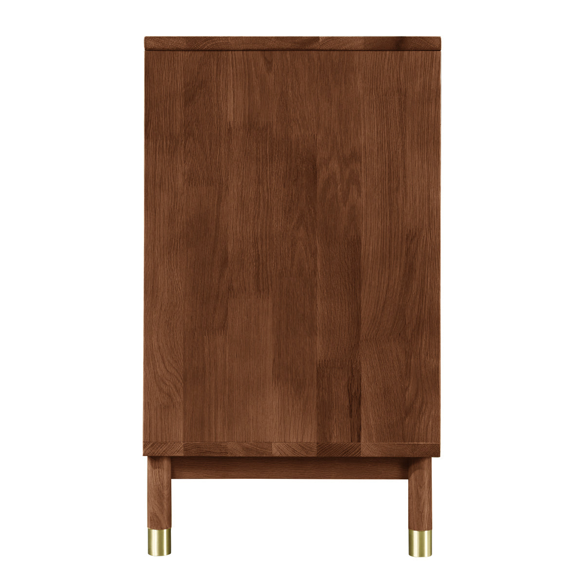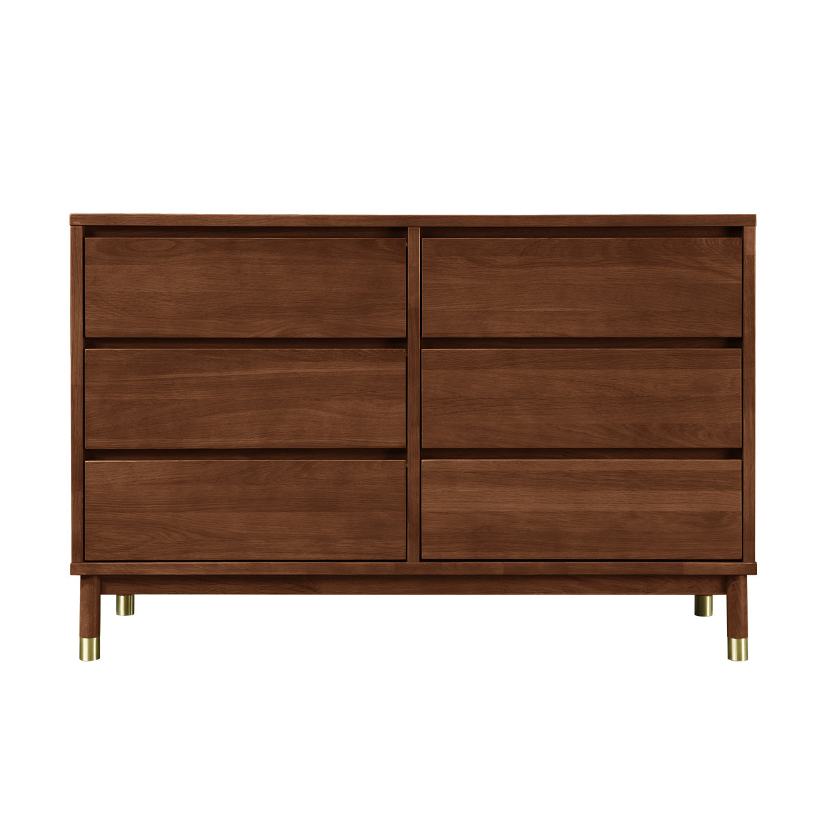 Solid American Walnut Timber, features six soft close drawers, brass capped legs.