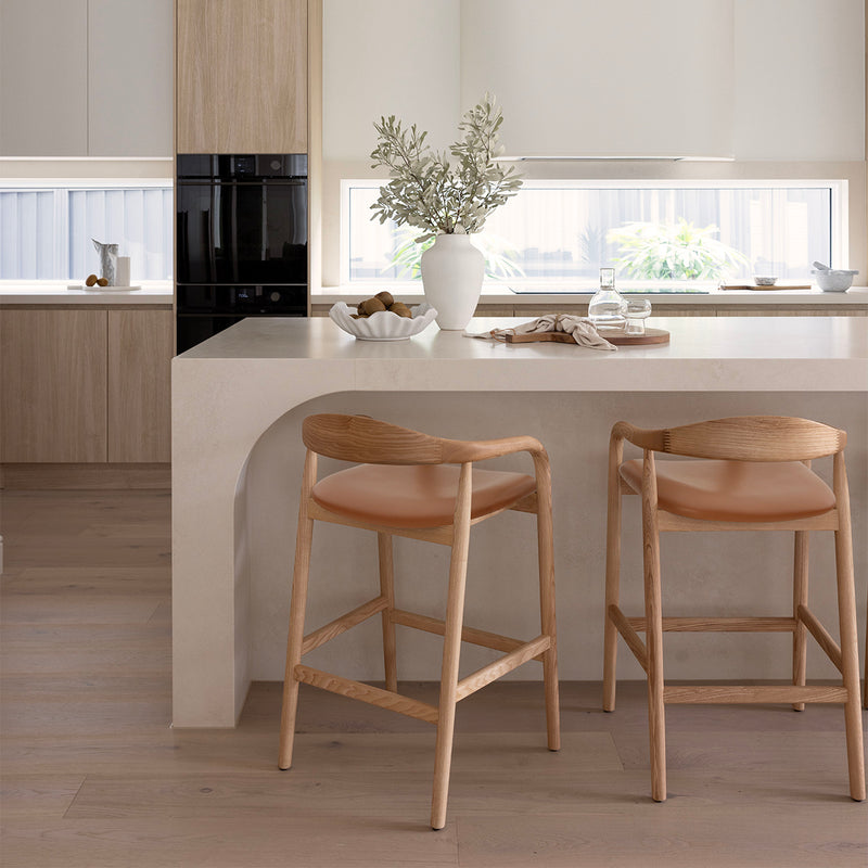 Timelessly designed, the Noris Leather Bar Stool is a contemporary piece with curved organic lines and refined design details. Built to last your home for years ahead, it features a solid timber frame with rounded edges and a smooth finish. The contrasting texture of the smooth leather upholstery brings sophistication, and depth to your kitchen space, while its classic combination of colours will provide versatility to suit a range of interior styles.