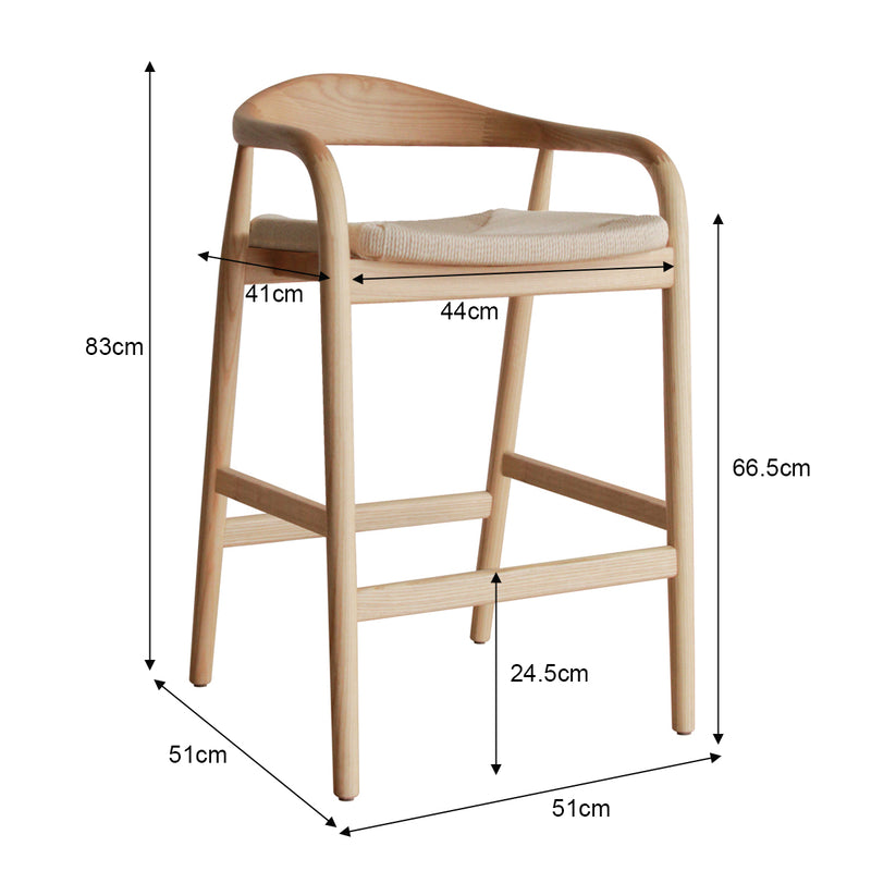 Noris Paper Cord Bar Stool - Natural / Ash