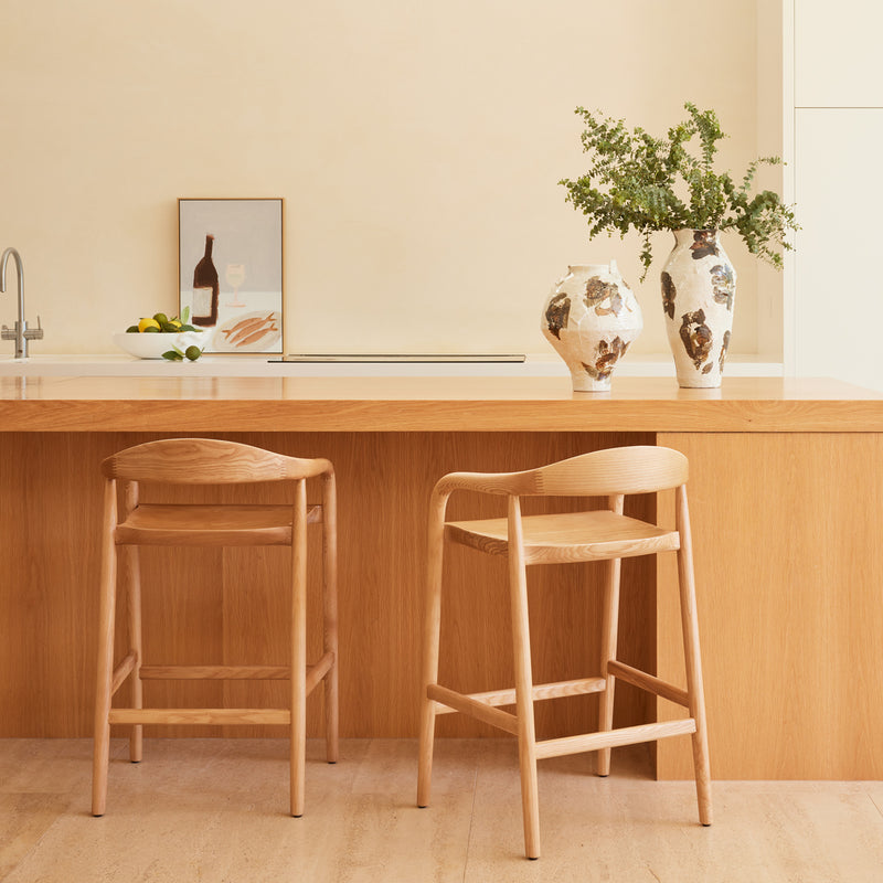 Timelessly designed, the Noris Timber Bar Stool is a contemporary piece with curved organic lines and refined design details. Built to last your home for years ahead, it features a solid timber frame with rounded edges and a smooth finish. Its subtle organic texture and colouring will add warmth and complement other natural finishes throughout your home. The simplicity and minimalist style of this bar stool makes for a versatile piece to suit almost any colour scheme and decor style.