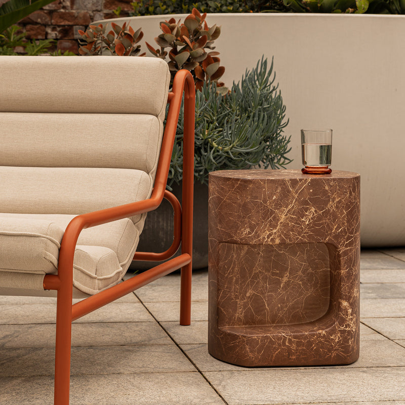 Sculptural and striking, the Palermo Side Table brings a refined sense of organic minimalism to any space. Crafted from durable concrete with a natural stone look, its curved silhouette and cut-out detail lend a contemporary edge to your indoor or covered outdoor setting. Available in various unique finishes, the Palermo will make a timeless statement in any home.