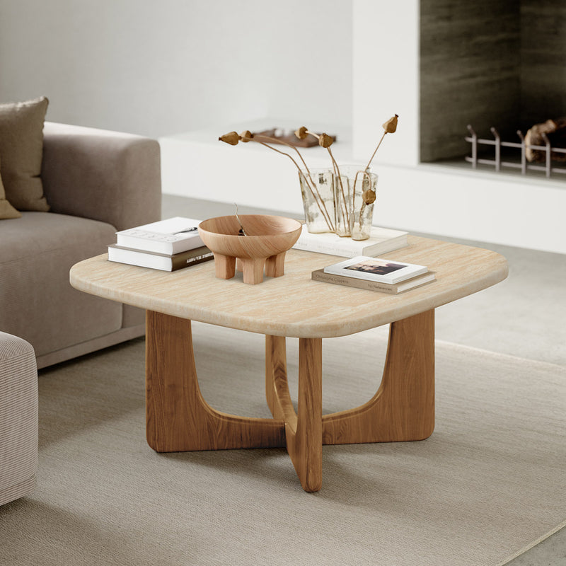 Pierro Travertine Coffee Table (Oak, Travertine)