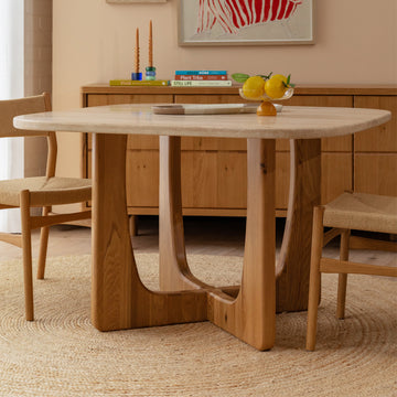 Pierro Travertine Dining Table (Oak, Travertine)