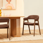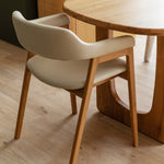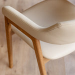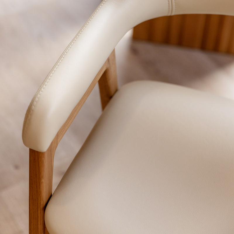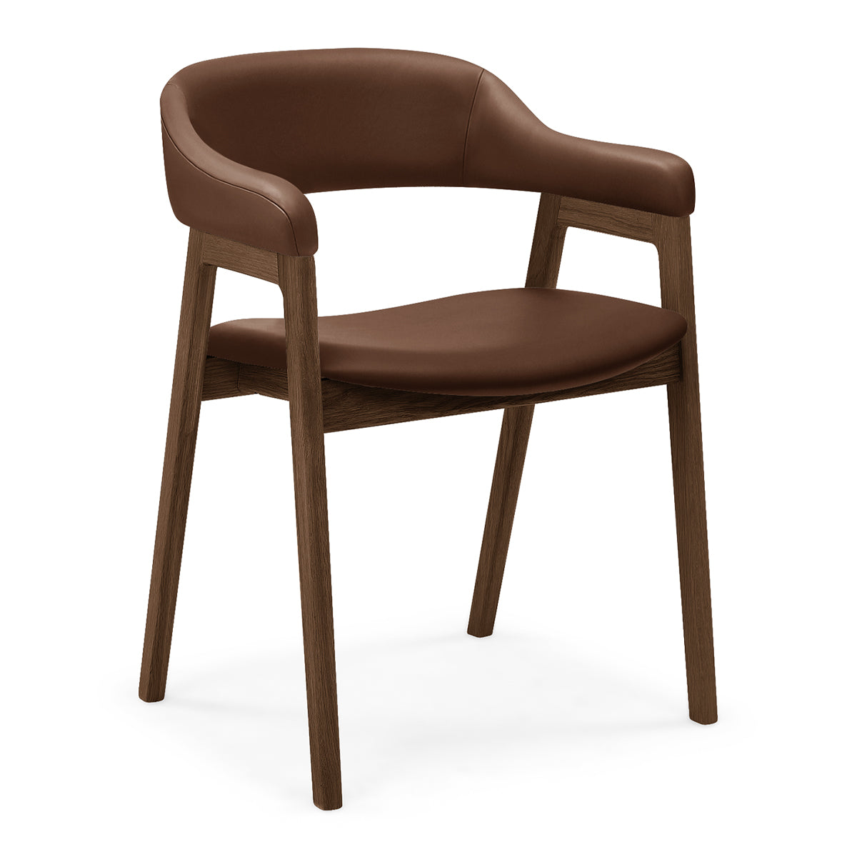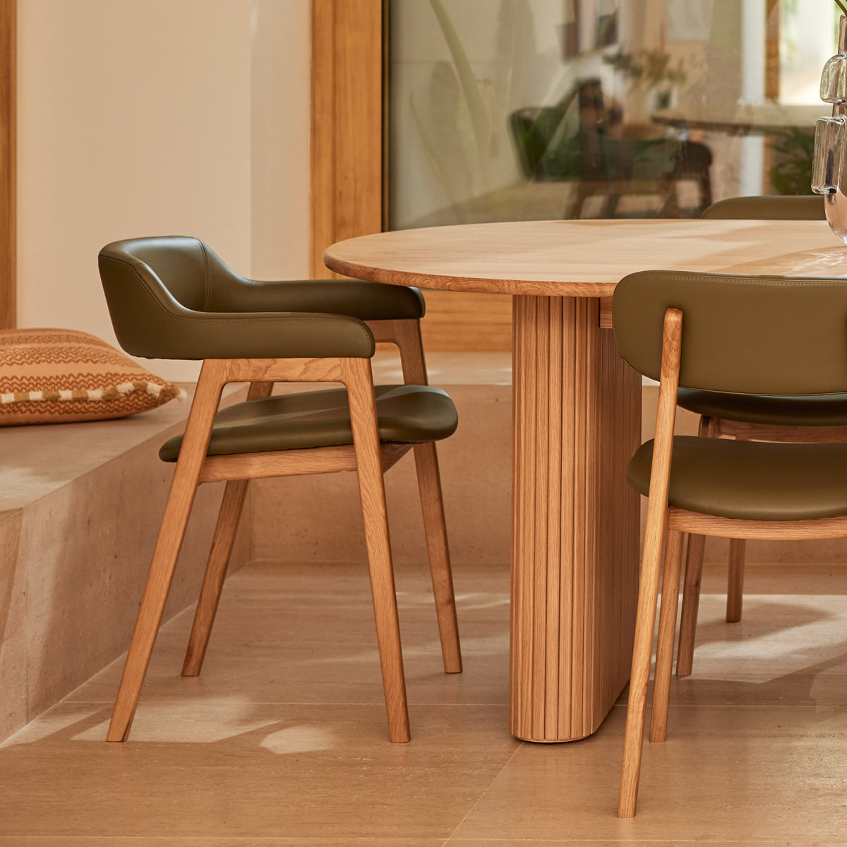 Contemporary in design, the Santino Leather Dining Arm Chair is the perfect piece to elevate any dining space. Crafted from solid oak timber, its sturdy frame features a gracefully curved form designed to provide optimal comfort and style. The seat, back and armrests are covered in a smooth leather upholstery, finishing the chair with a stunning contrasting texture.