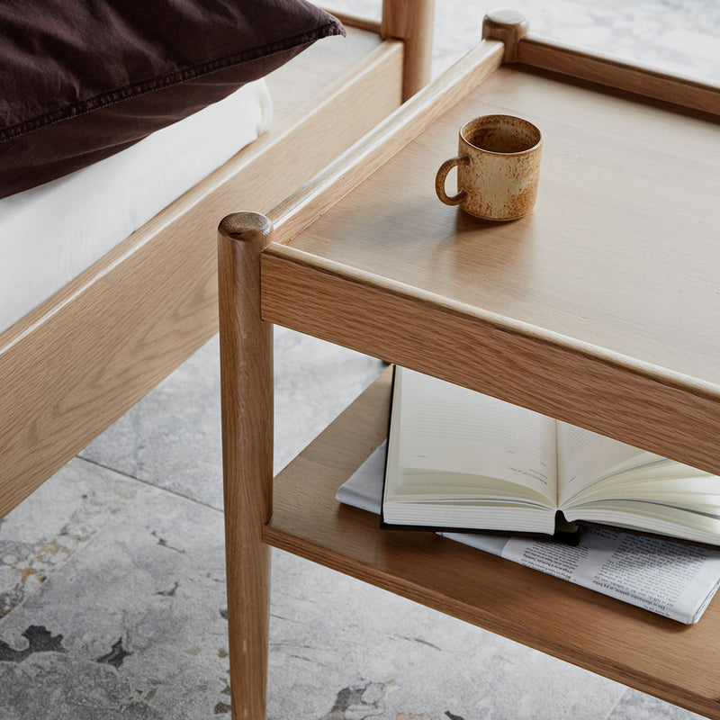 The Santino Side Table is a minimalist staple piece with timeless appeal. Crafted from solid and veneered oak wood, it features tapered legs and gently raised edges that exude sophistication. The open shelf design adds a practical element, providing plenty of storage and display options for your favourite books and decor. With its clean lines and simple form, Santino will be the perfect addition to any living space or bedroom.