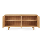 Crafted from solid oak with a natural finish, four push-to-open doors for concealed storage, and generous internal shelving for practical organisation.