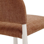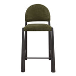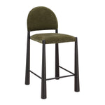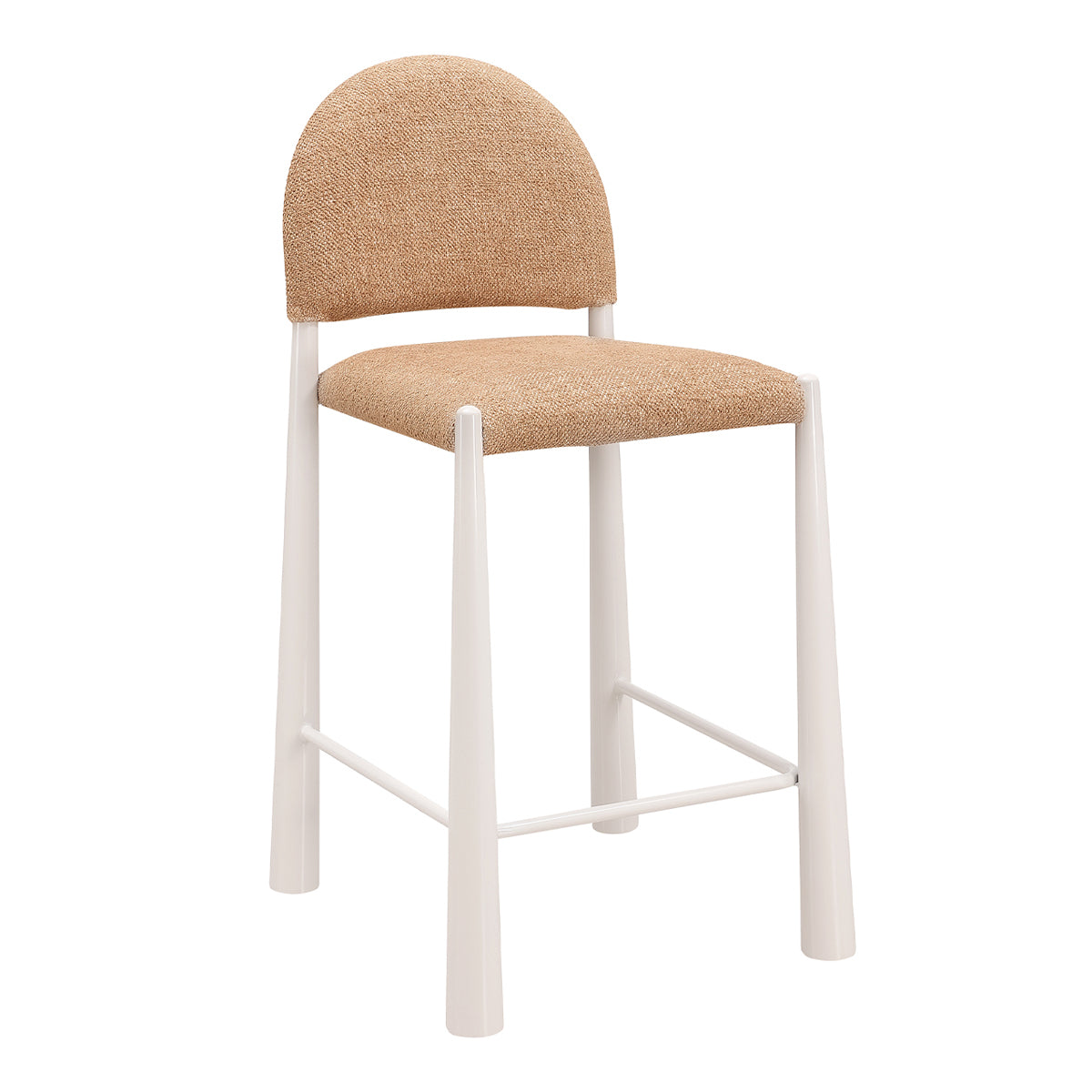 Boucle upholstery, steel legs, arched backrest, available in various colourways.