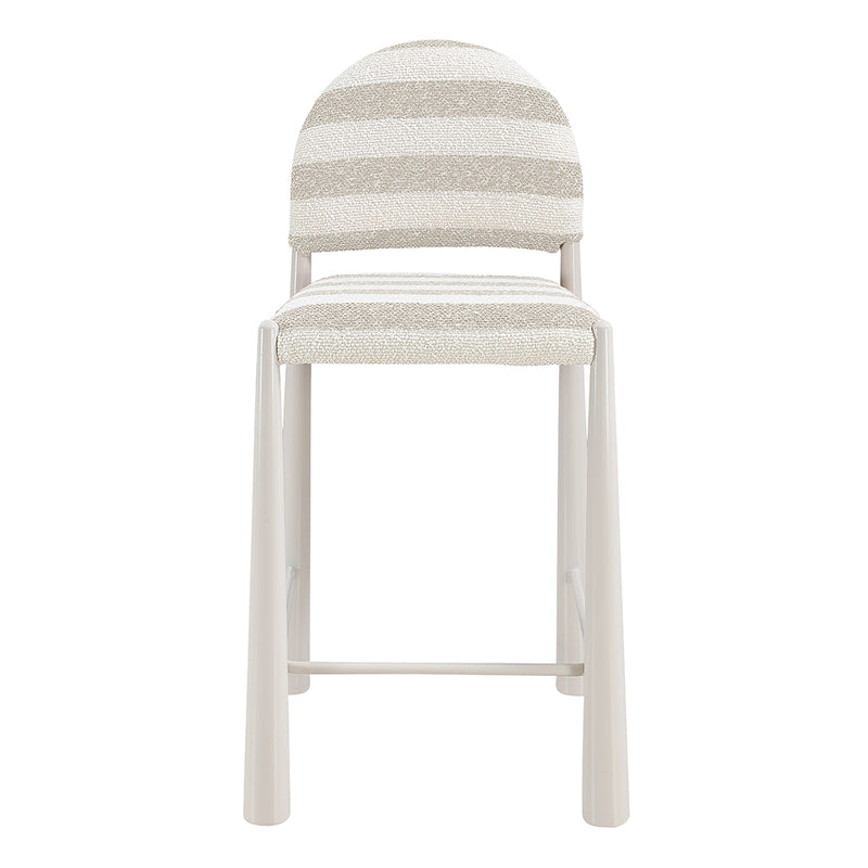 Fabric upholstery, steel legs, arched backrest, contrasting stripe design, available in various colourways.