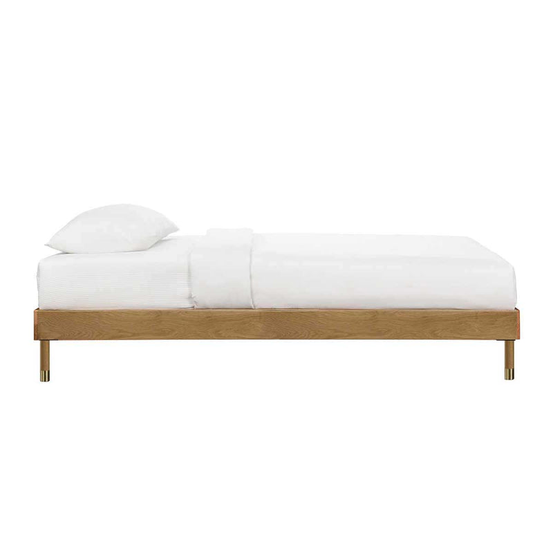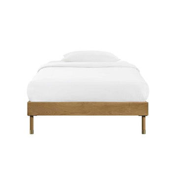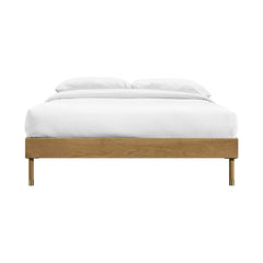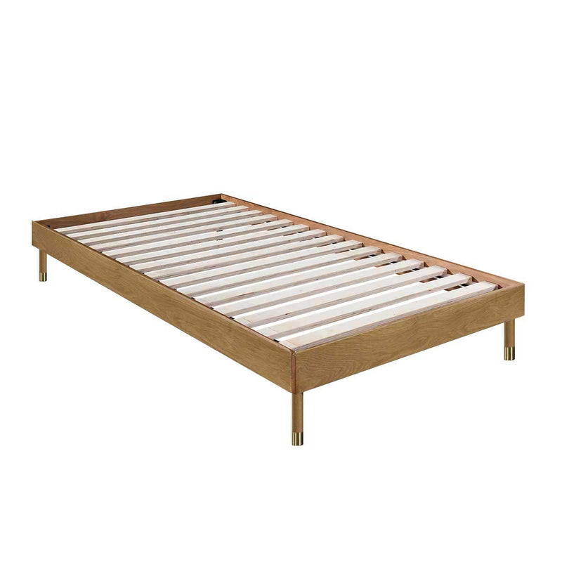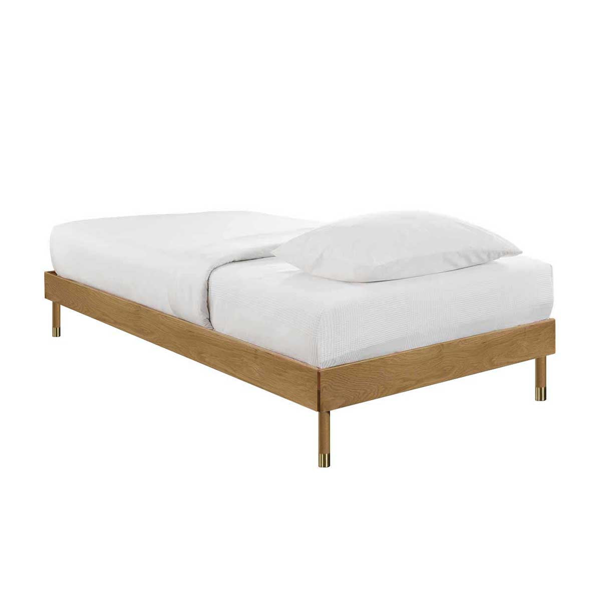 Solid American Oak bed base only, timber slats and 2 sets of solid timber legs included: solid Oak with brass capping and solid Oak. Easy to assemble.