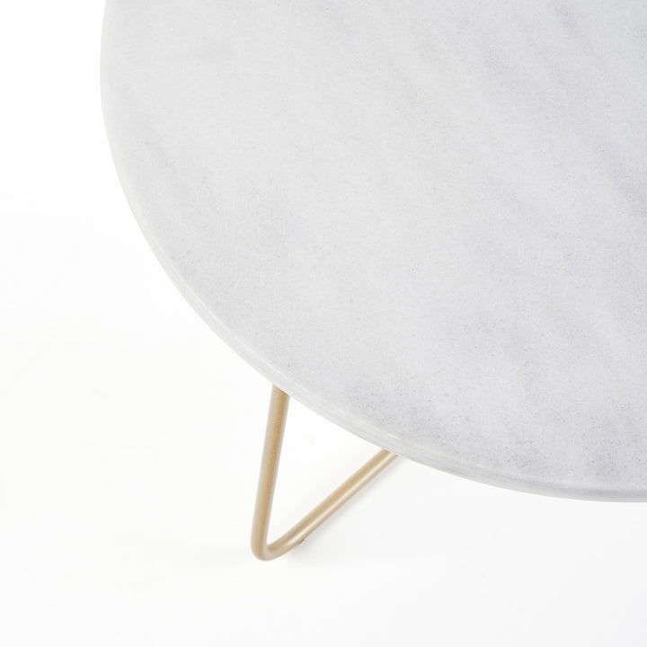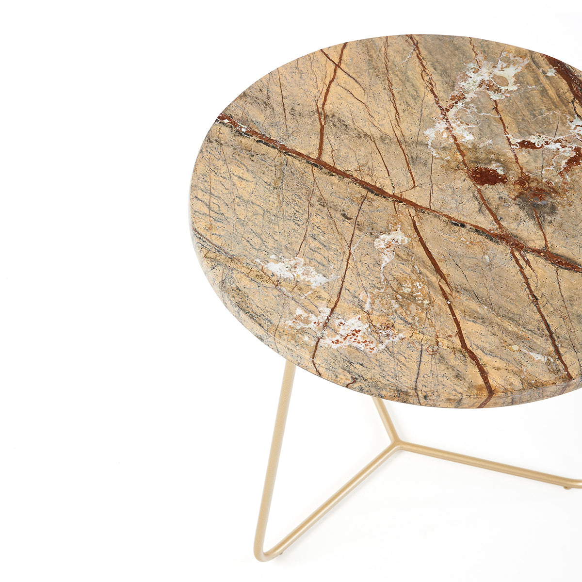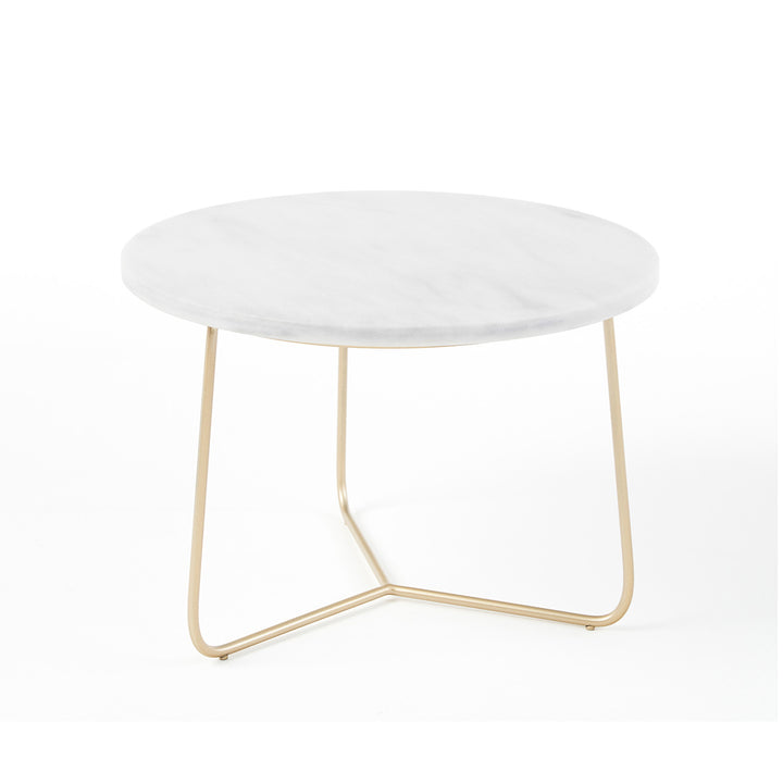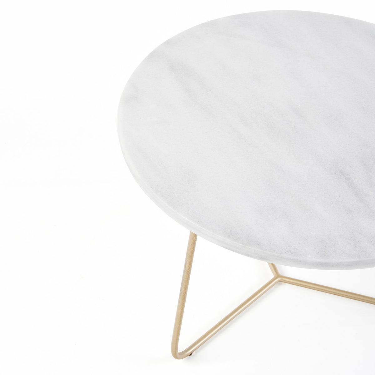 Gold-toned legs, circular cut marble table top, available in 3 marble colourways.
