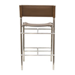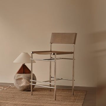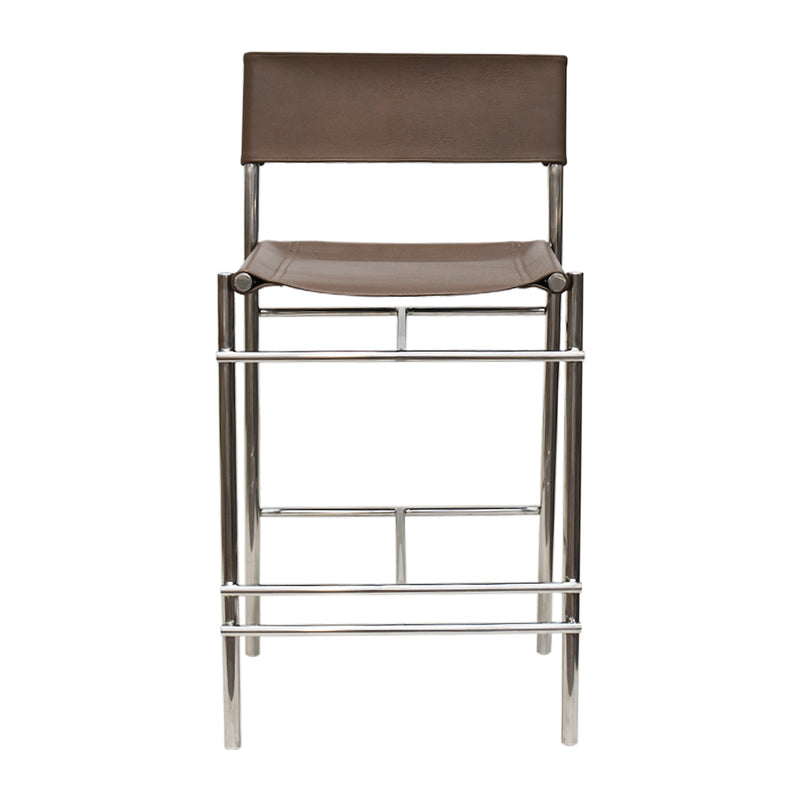 Tubular stainless steel frame paired with a black taupe leather seat and backrest.