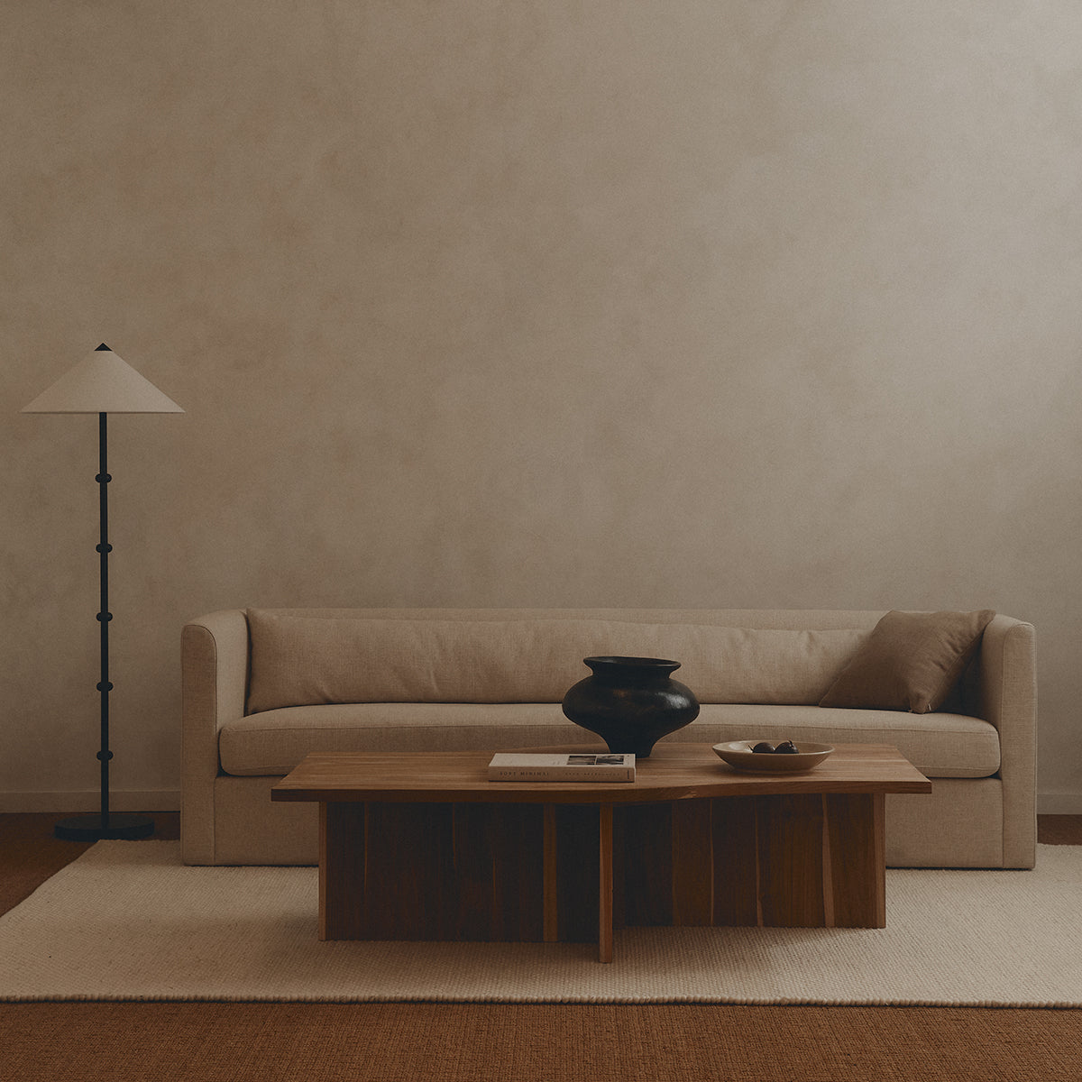 Timeless design, neutral upholstery, teak wood frame, match with Etta Armchair.