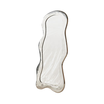 Solid cast aluminium wavy frame with glass mirror. Wall fixings are not attached with this mirror. Due to weight, we recommend hiring a professional to hang or install this to your wall.