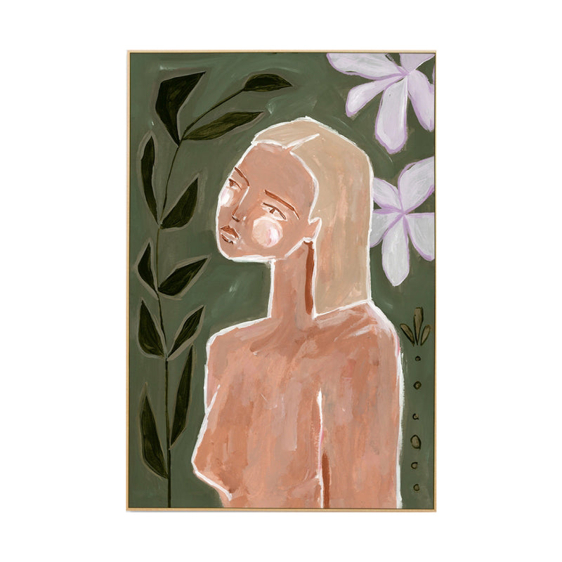 Stretched canvas print, available in various sizes, light timber look frame.