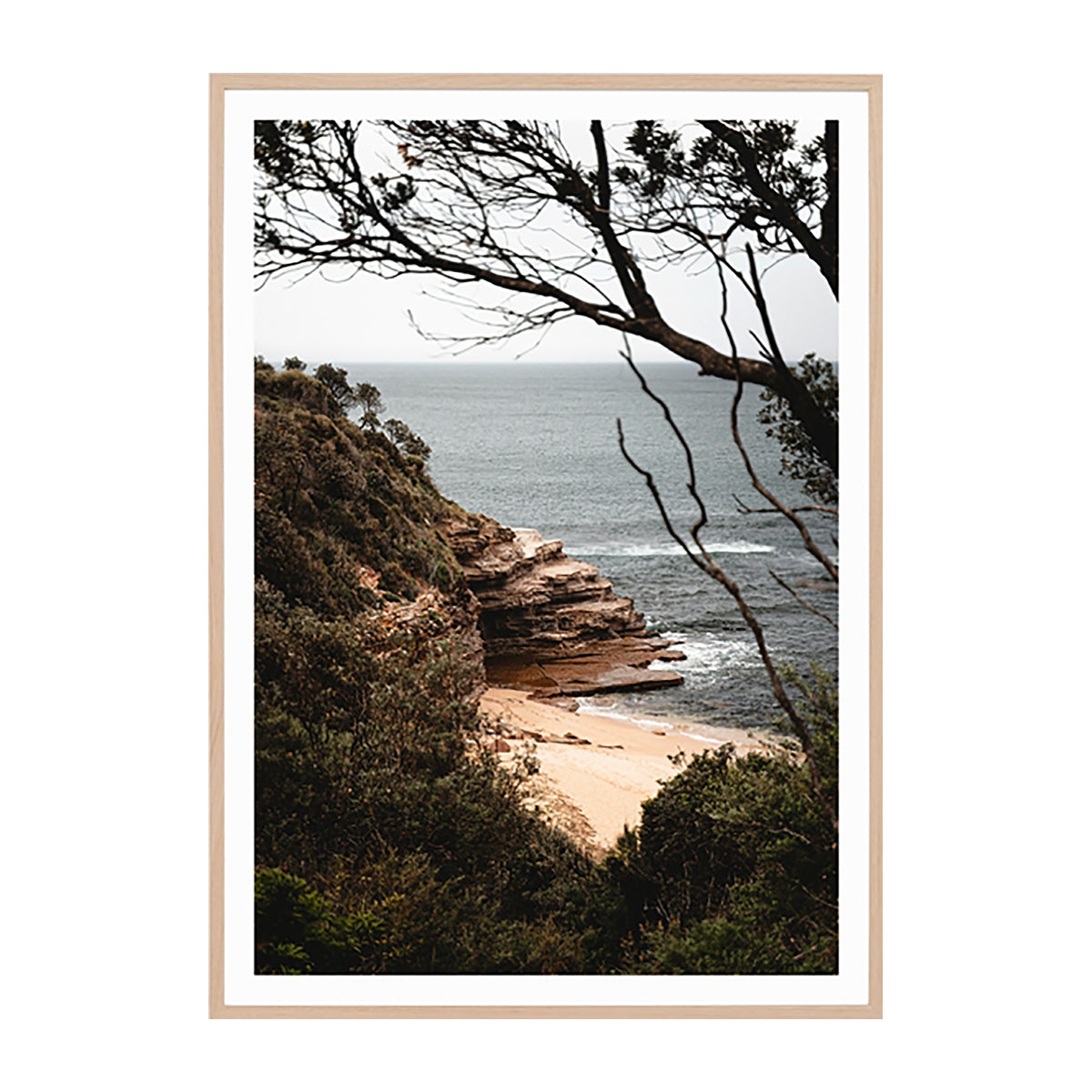 A stunning photographic print featuring a secluded beach on the coast of New South Wales, Australia.