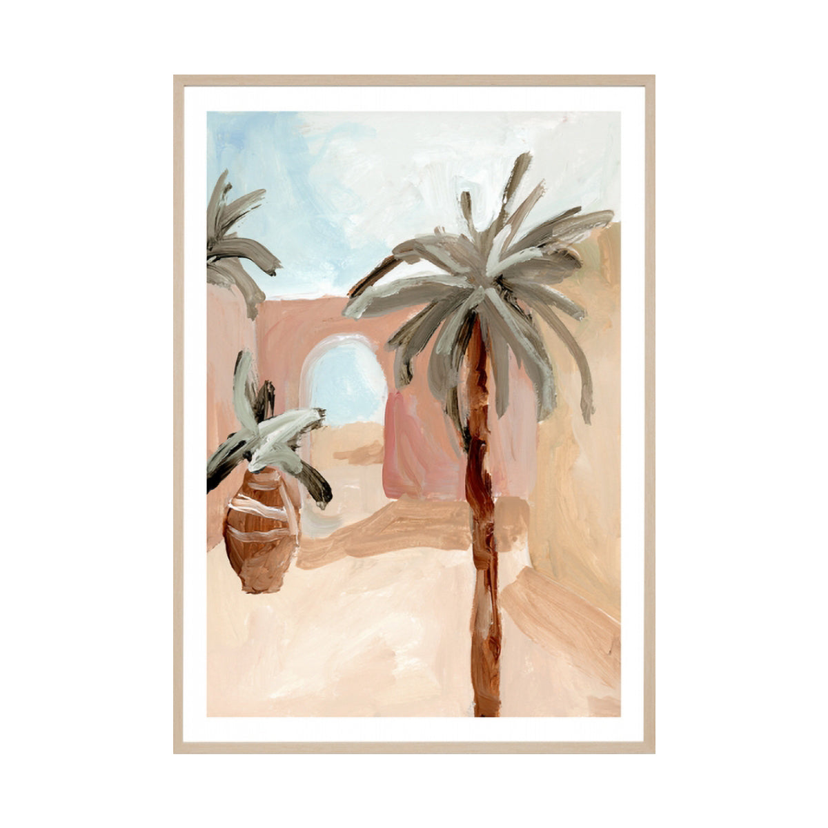 The Villa Study Blush Prints will make a statement in any space with their stunning tropical charm. Boasting a warm colour palette, these hand-generated prints effortlessly capture the serenity of palm trees against blush-toned walls with lovely arched details. These pieces will infuse any space with a nostalgic feeling of holiday bliss and contemporary elegance.