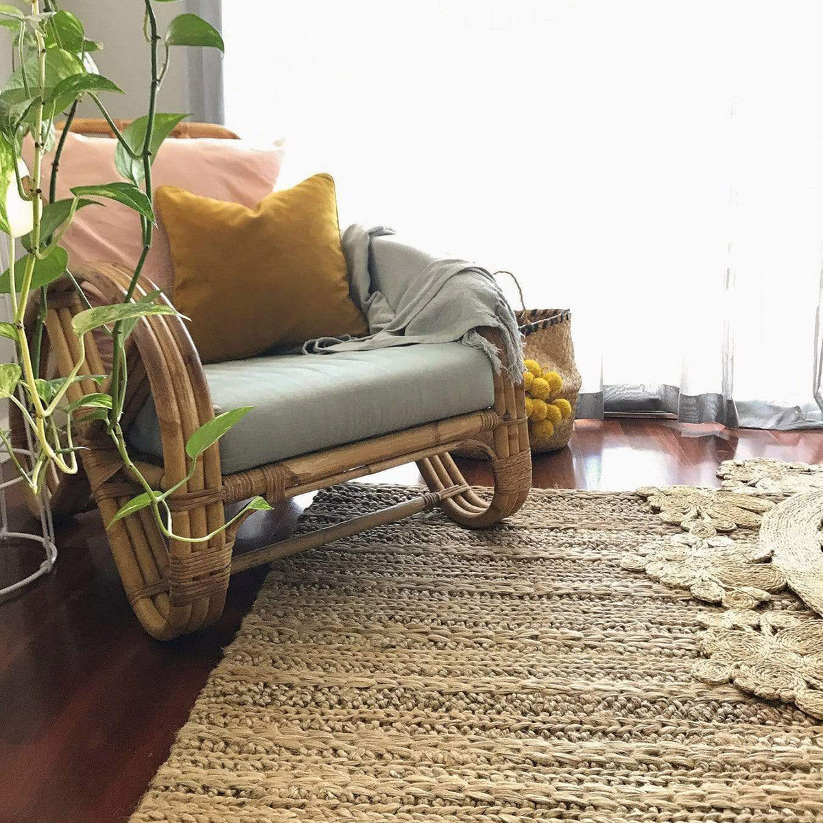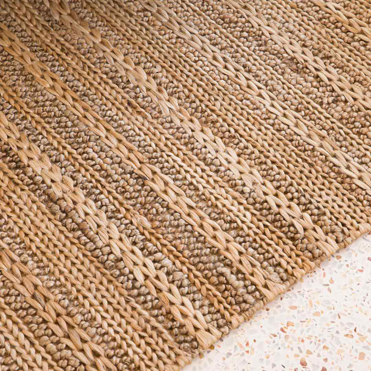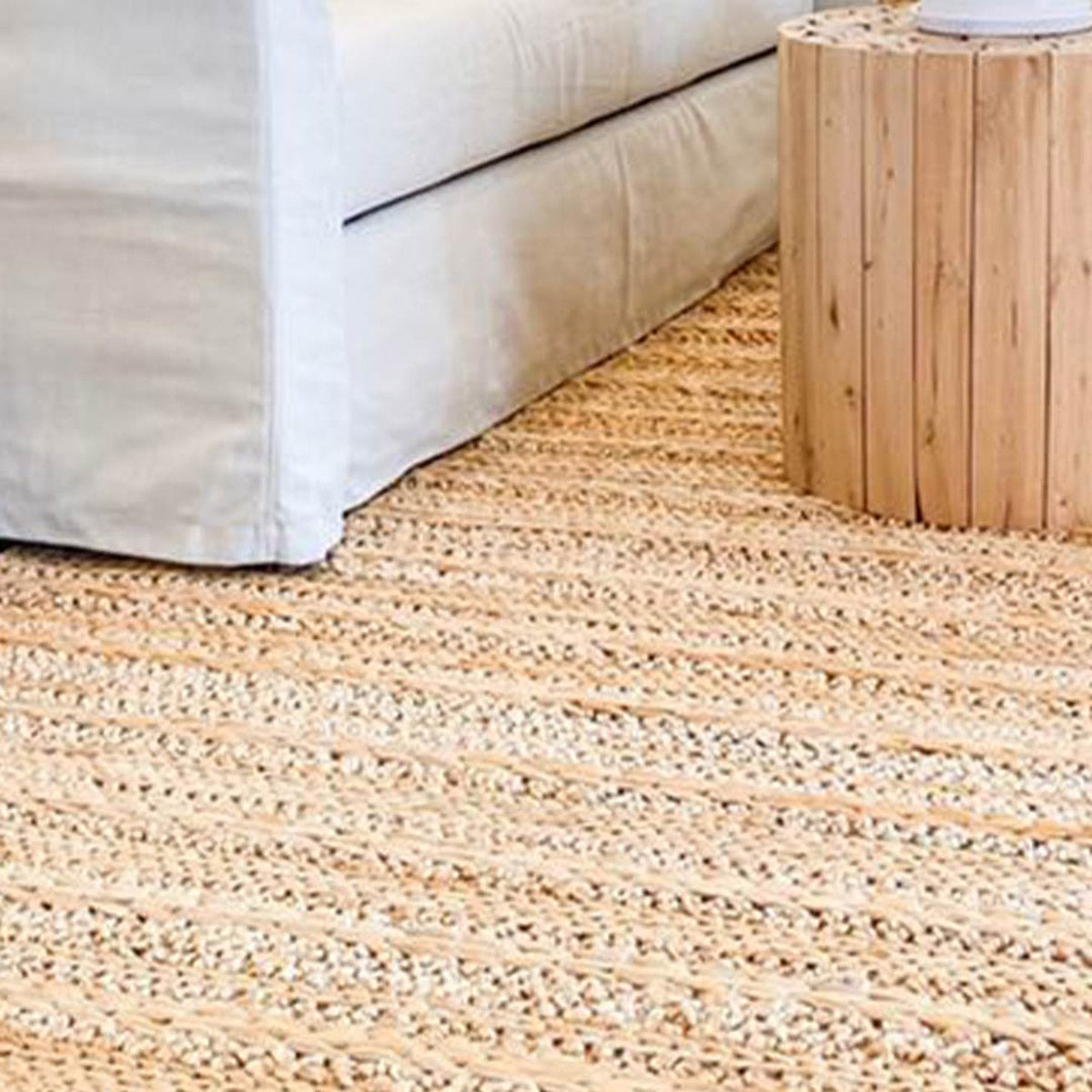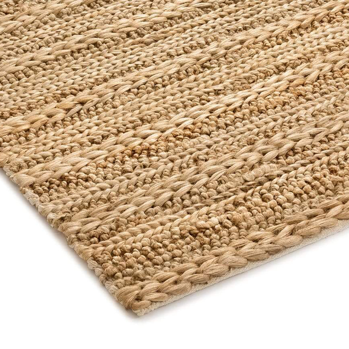 Designed in-house exclusively for the Miss Amara Collection, the Eboni Chunky Braided Jute and Cotton Rug is a chunky jute rug featuring a natural tan colour palette. Made from a blend of eco-friendly jute and natural cotton, Eboni has a natural, silky tactile feel and heroes the beautiful natural colour variations of the undyed jute fibres. Handwoven in India by skilled artisans using a combination of traditional rug techniques, the threads have been looped and braided to create a stunning linear design with loads of texture.