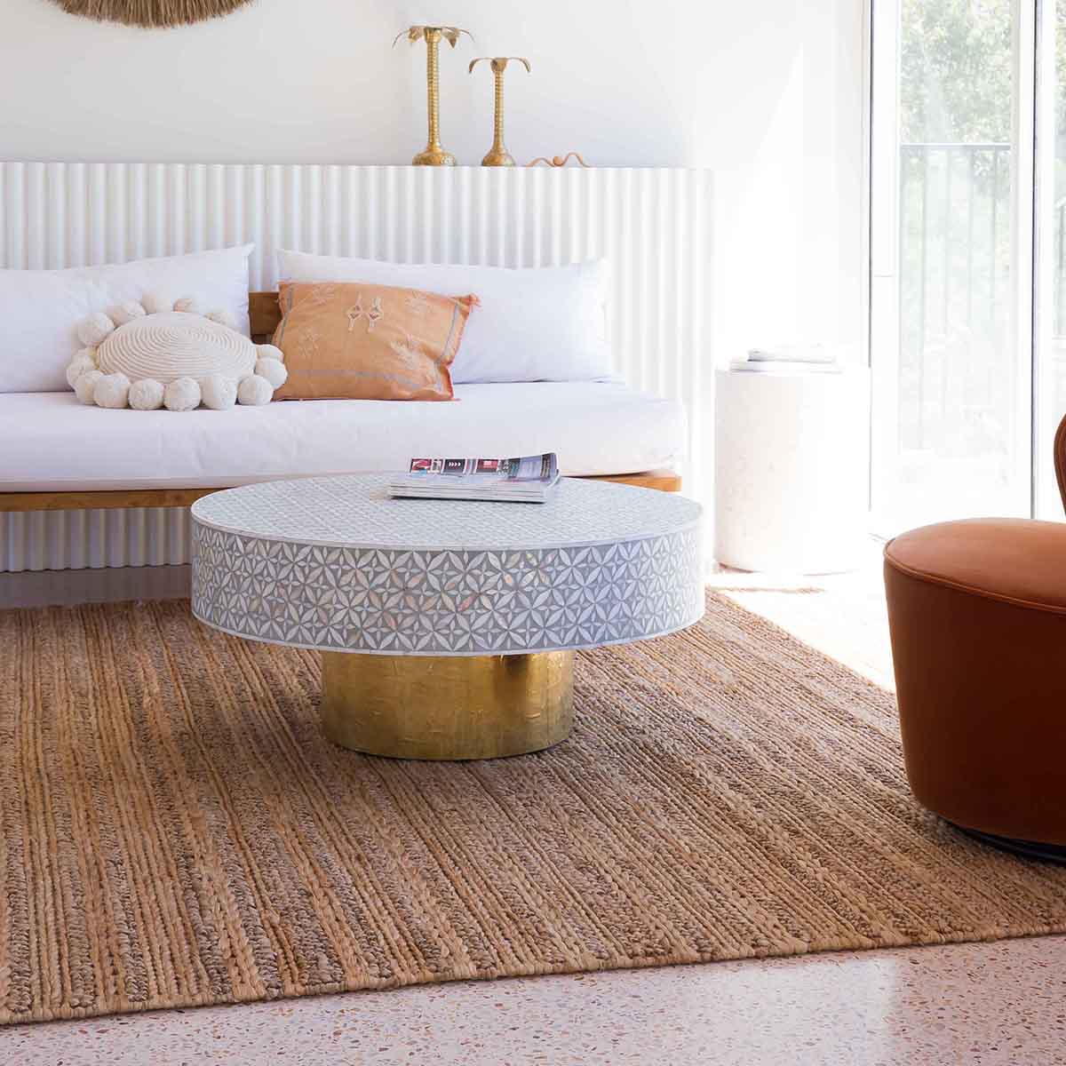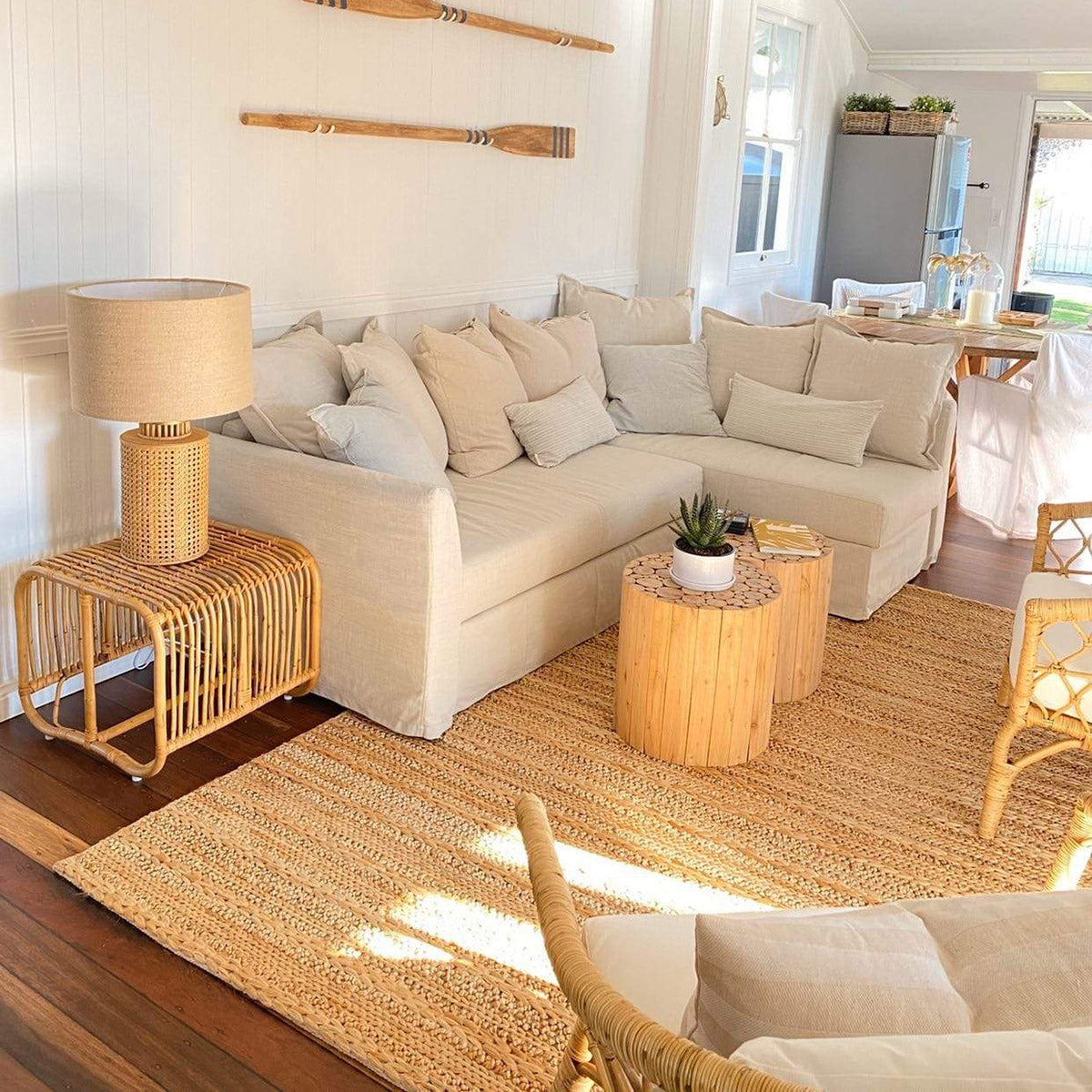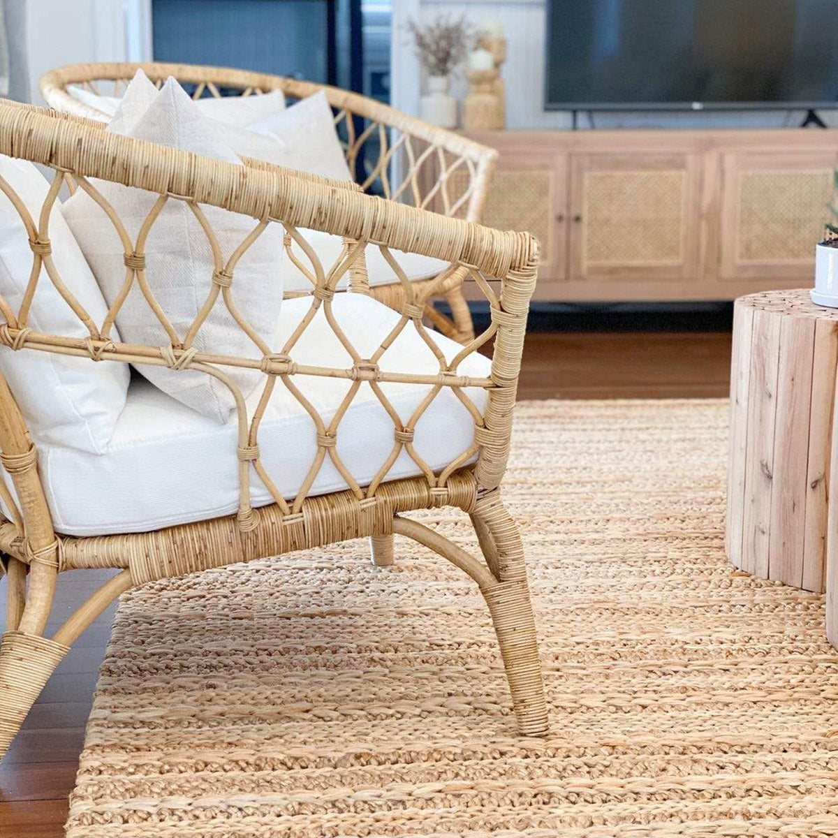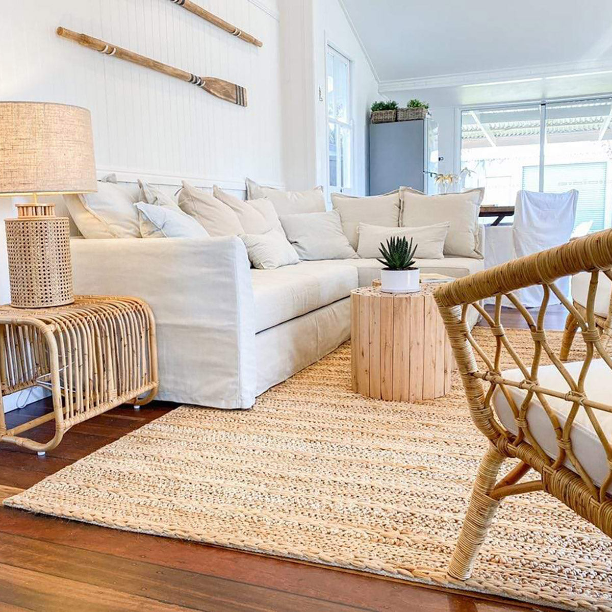 Designed in-house exclusively for the Miss Amara Collection, the Eboni Chunky Braided Jute and Cotton Rug is a chunky jute rug featuring a natural tan colour palette. Made from a blend of eco-friendly jute and natural cotton, Eboni has a natural, silky tactile feel and heroes the beautiful natural colour variations of the undyed jute fibres. Handwoven in India by skilled artisans using a combination of traditional rug techniques, the threads have been looped and braided to create a stunning linear design with loads of texture.