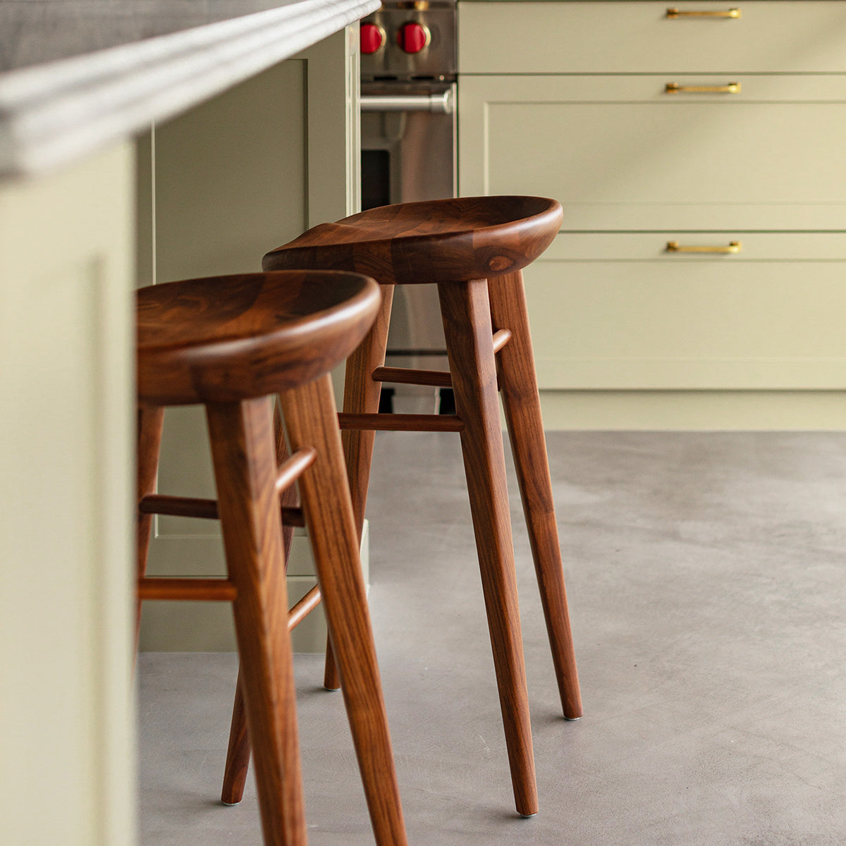 Durable solid timber frame, contoured seat, foot rest for comfort, original design from Organic Modernism. Available in oak and walnut and in bar and counter heights, timber is a natural material, and any variances in colour, grain or marking should be expected and appreciated. Enjoy your unique piece of furniture!