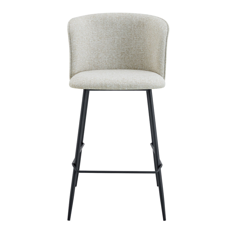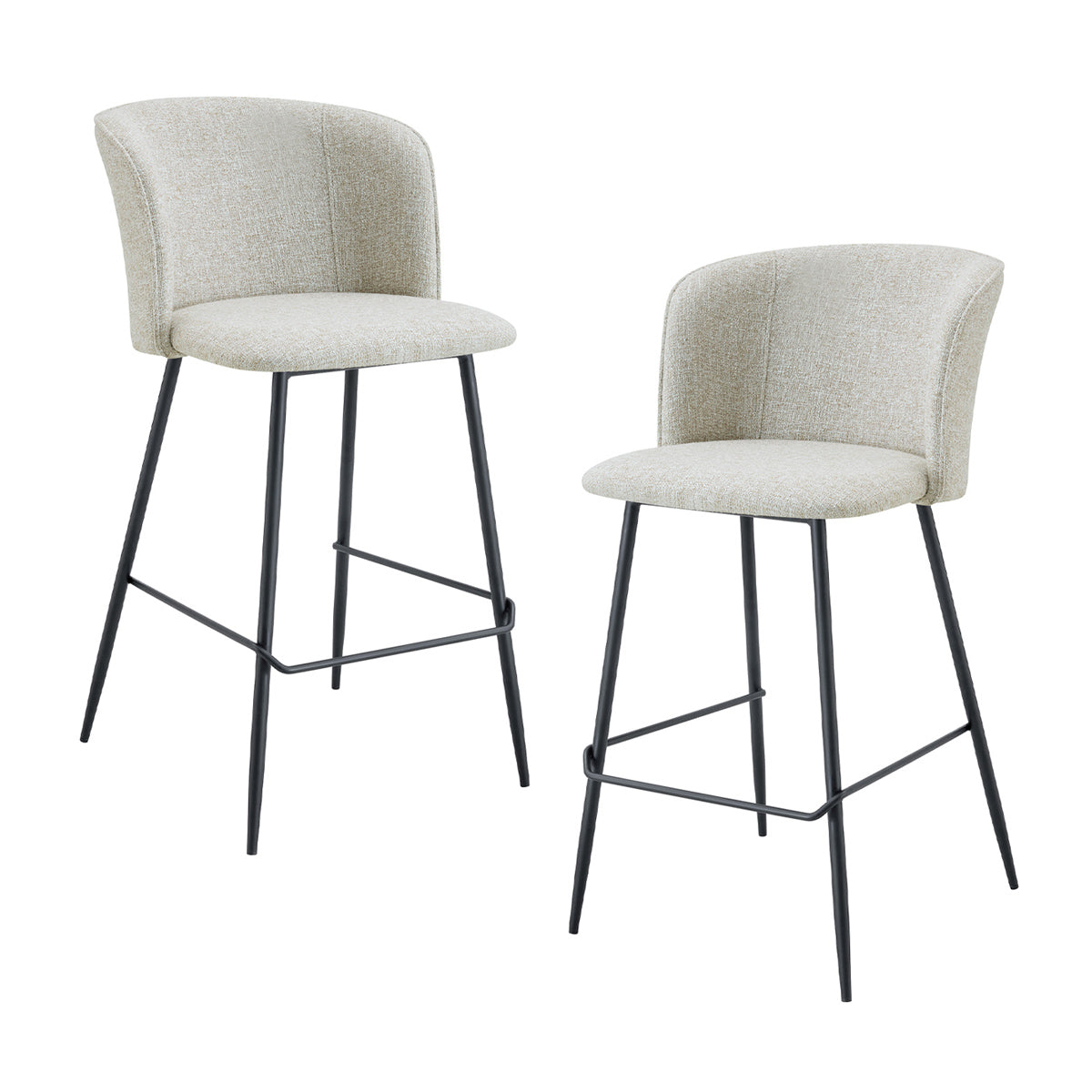 Set of 2, metal frame, fabric upholstery, curved details.